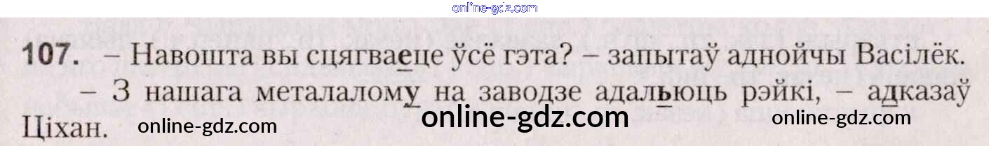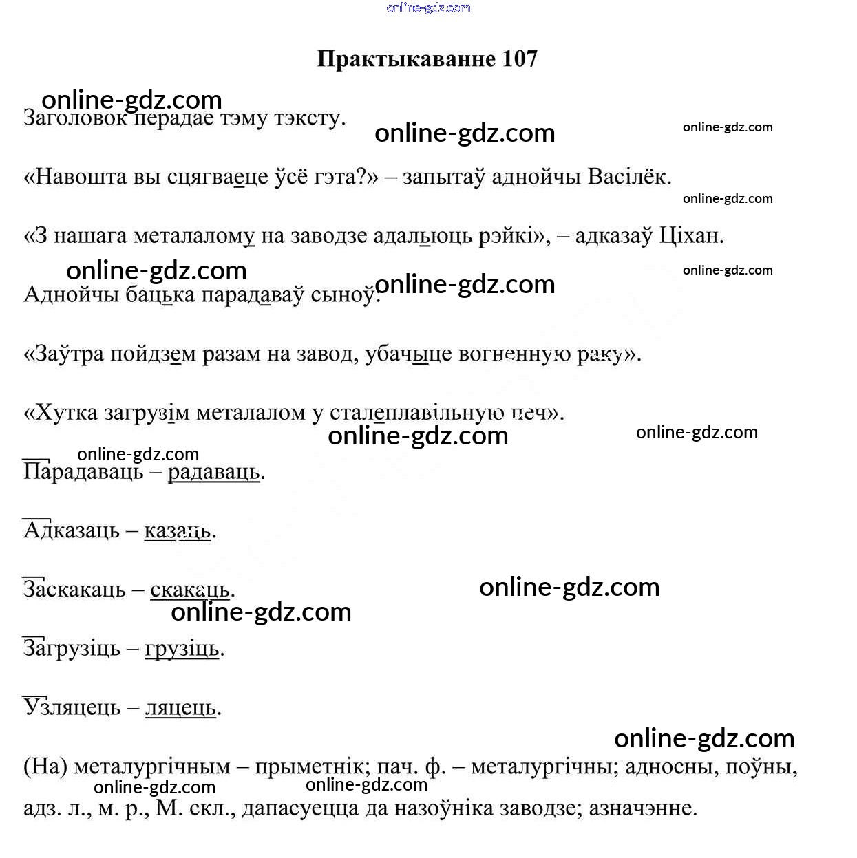Готовые домашние задания по Белорусскому языку за 7 класс Учебник Валочка, Язерская 2020 - Практыкаванні 107