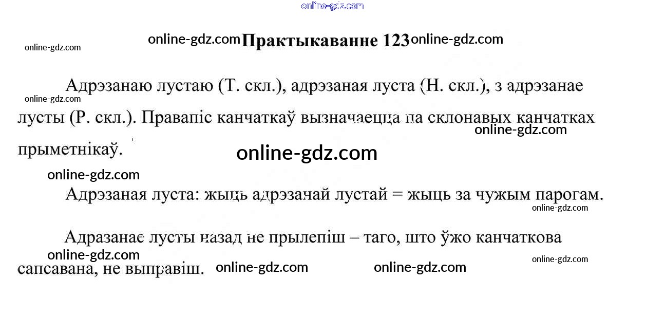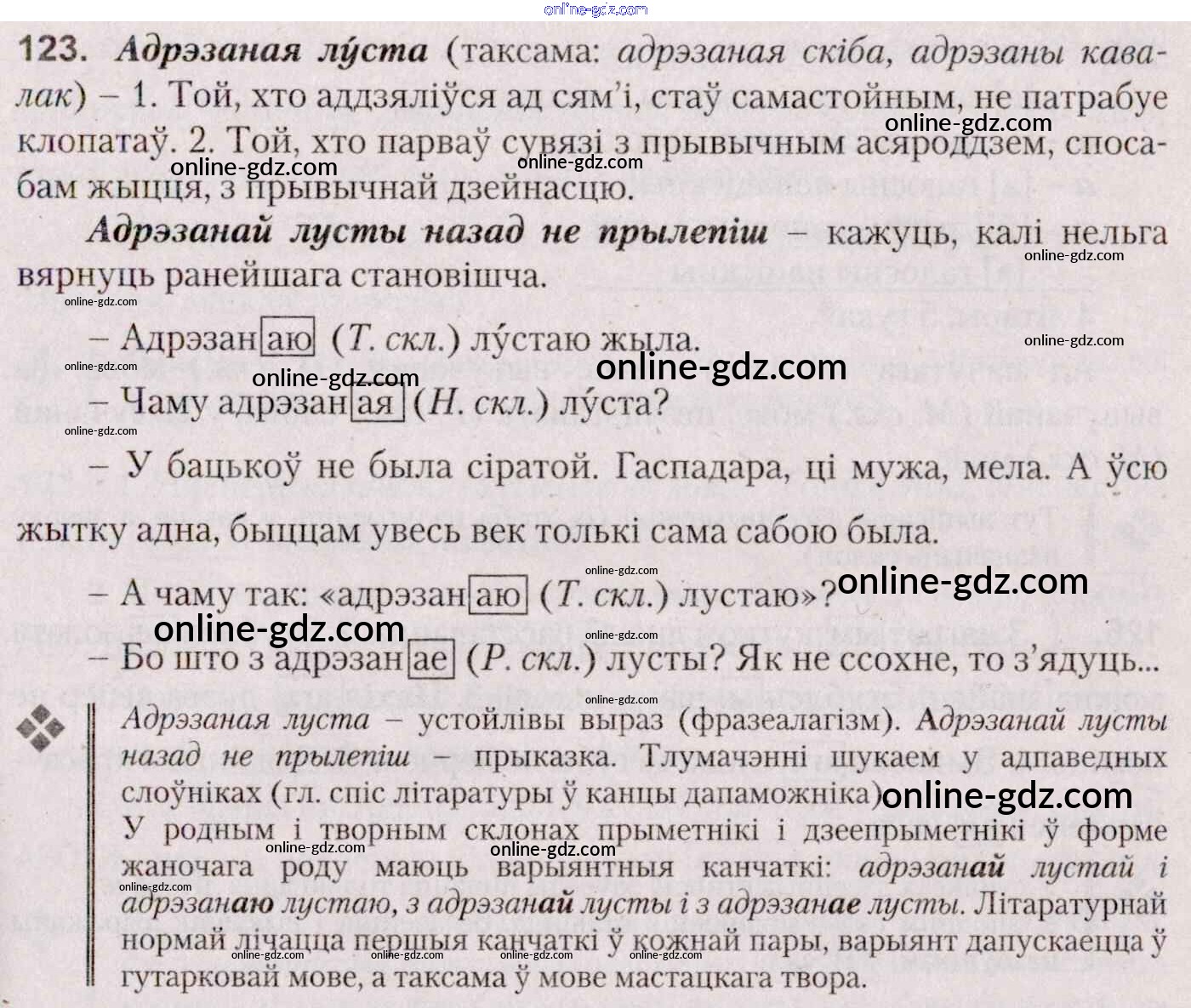 Готовые домашние задания по Белорусскому языку за 7 класс Учебник Валочка, Язерская 2020 - Практыкаванні 123