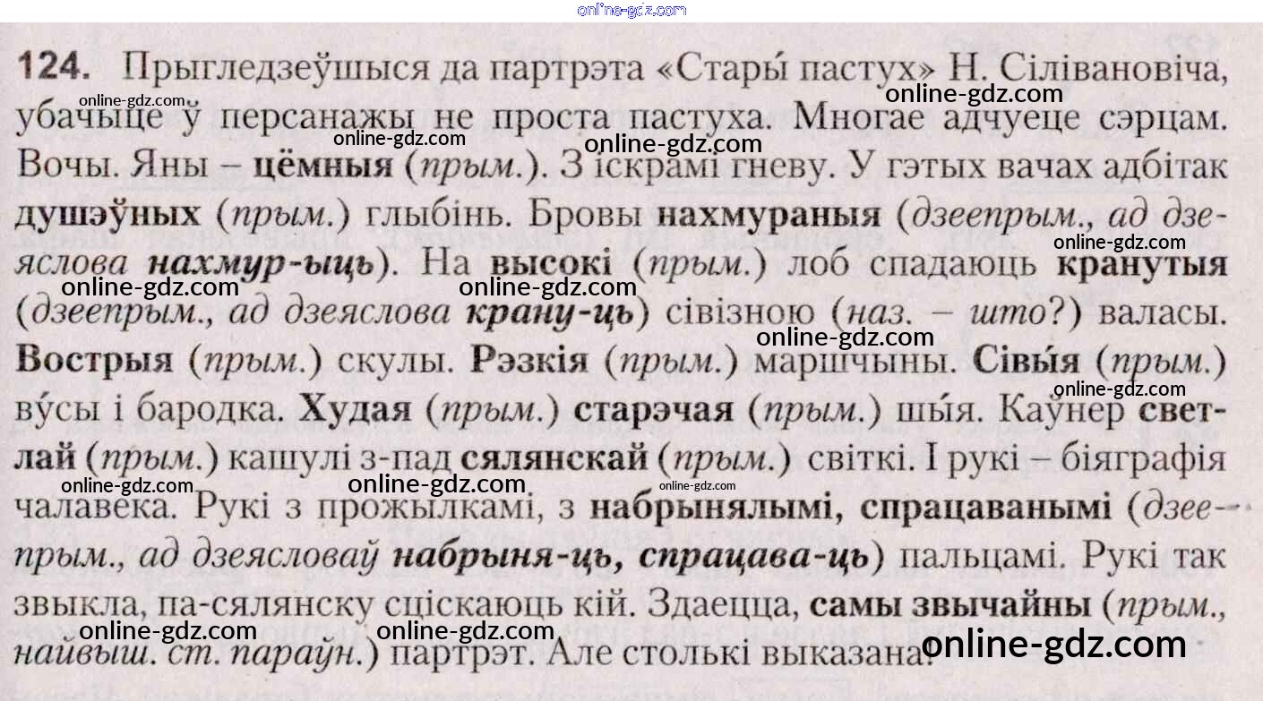 Готовые домашние задания по Белорусскому языку за 7 класс Учебник Валочка, Язерская 2020 - Практыкаванні 124