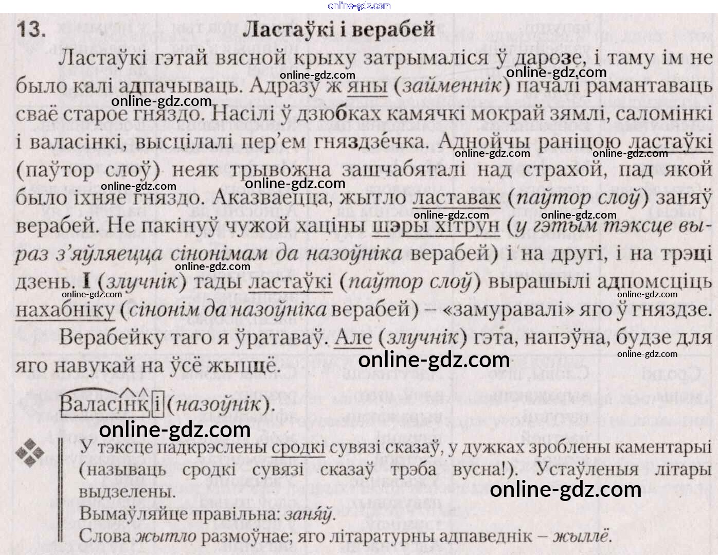 Готовые домашние задания по Белорусскому языку за 7 класс Учебник Валочка, Язерская 2020 - Практыкаванні 13
