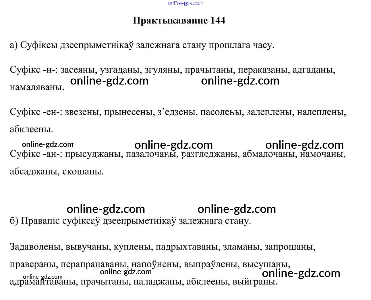 Готовые домашние задания по Белорусскому языку за 7 класс Учебник Валочка, Язерская 2020 - Практыкаванні 144