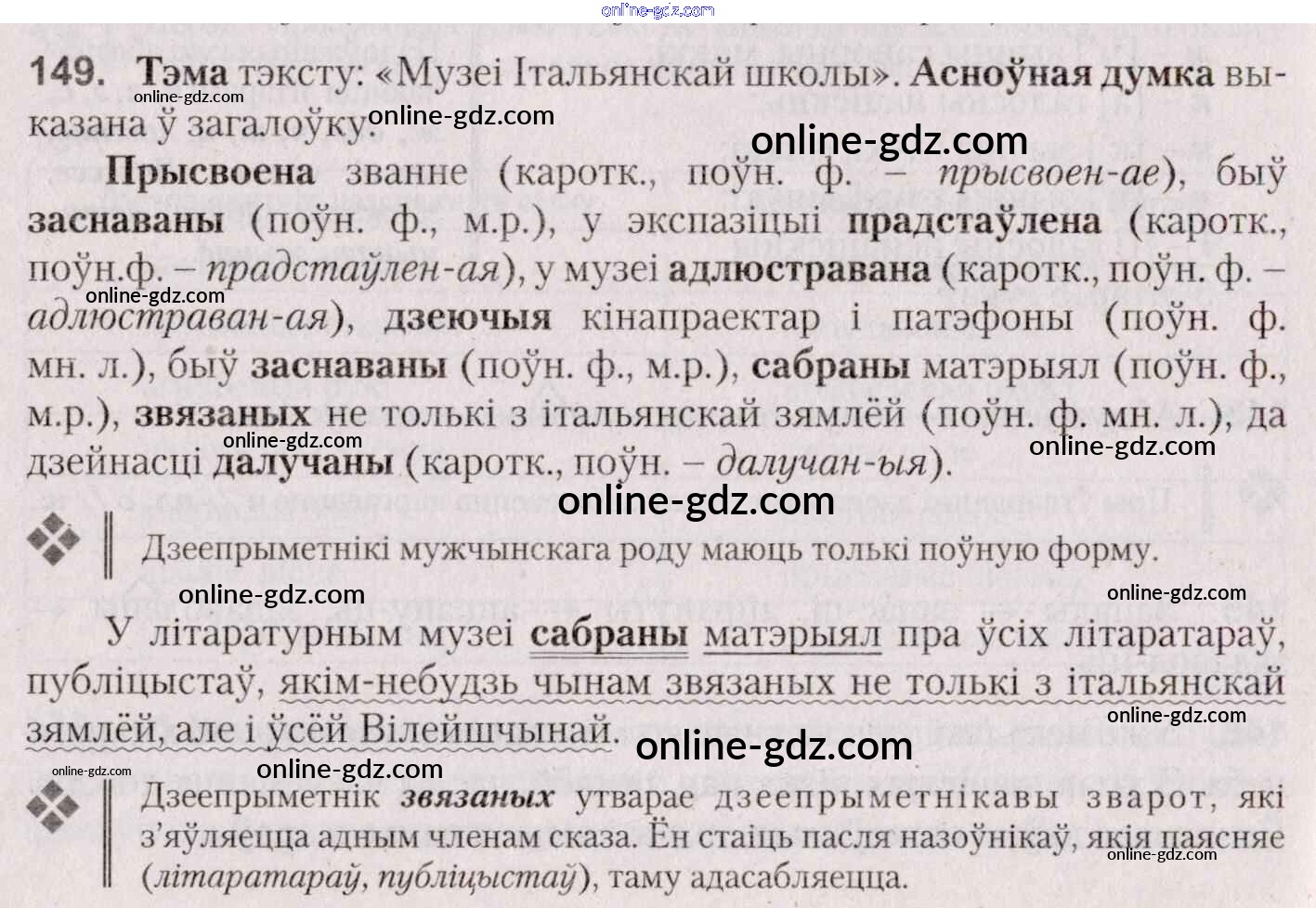 Готовые домашние задания по Белорусскому языку за 7 класс Учебник Валочка, Язерская 2020 - Практыкаванні 149