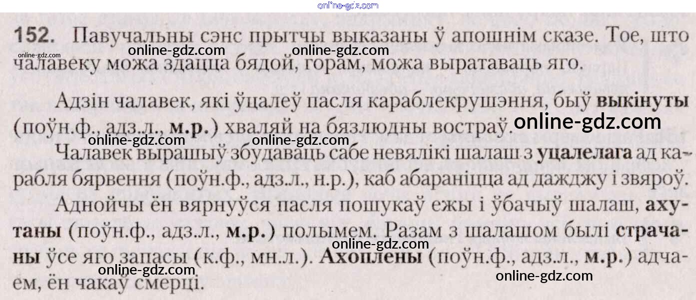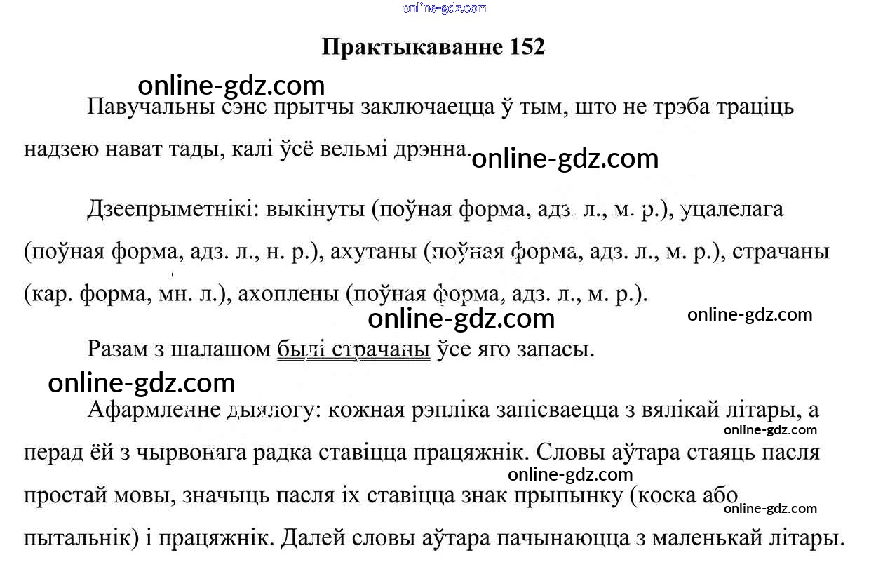 Готовые домашние задания по Белорусскому языку за 7 класс Учебник Валочка, Язерская 2020 - Практыкаванні 152