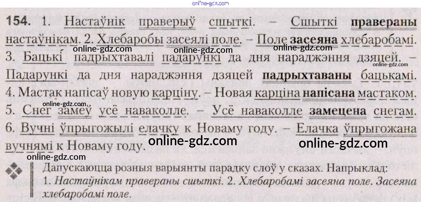 Готовые домашние задания по Белорусскому языку за 7 класс Учебник Валочка, Язерская 2020 - Практыкаванні 154