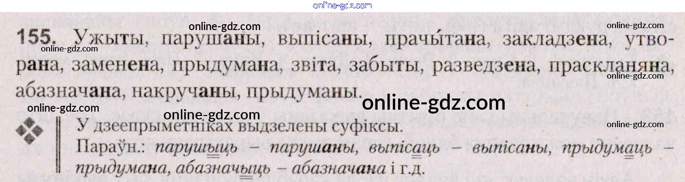Готовые домашние задания по Белорусскому языку за 7 класс Учебник Валочка, Язерская 2020 - Практыкаванні 155