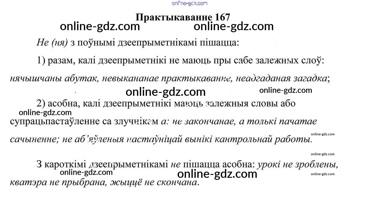 Готовые домашние задания по Белорусскому языку за 7 класс Учебник Валочка, Язерская 2020 - Практыкаванні 167