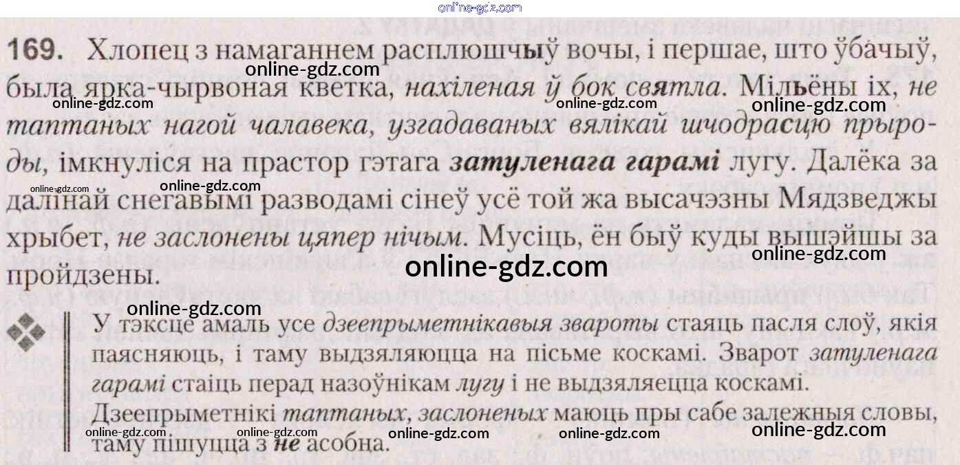 Готовые домашние задания по Белорусскому языку за 7 класс Учебник Валочка, Язерская 2020 - Практыкаванні 169
