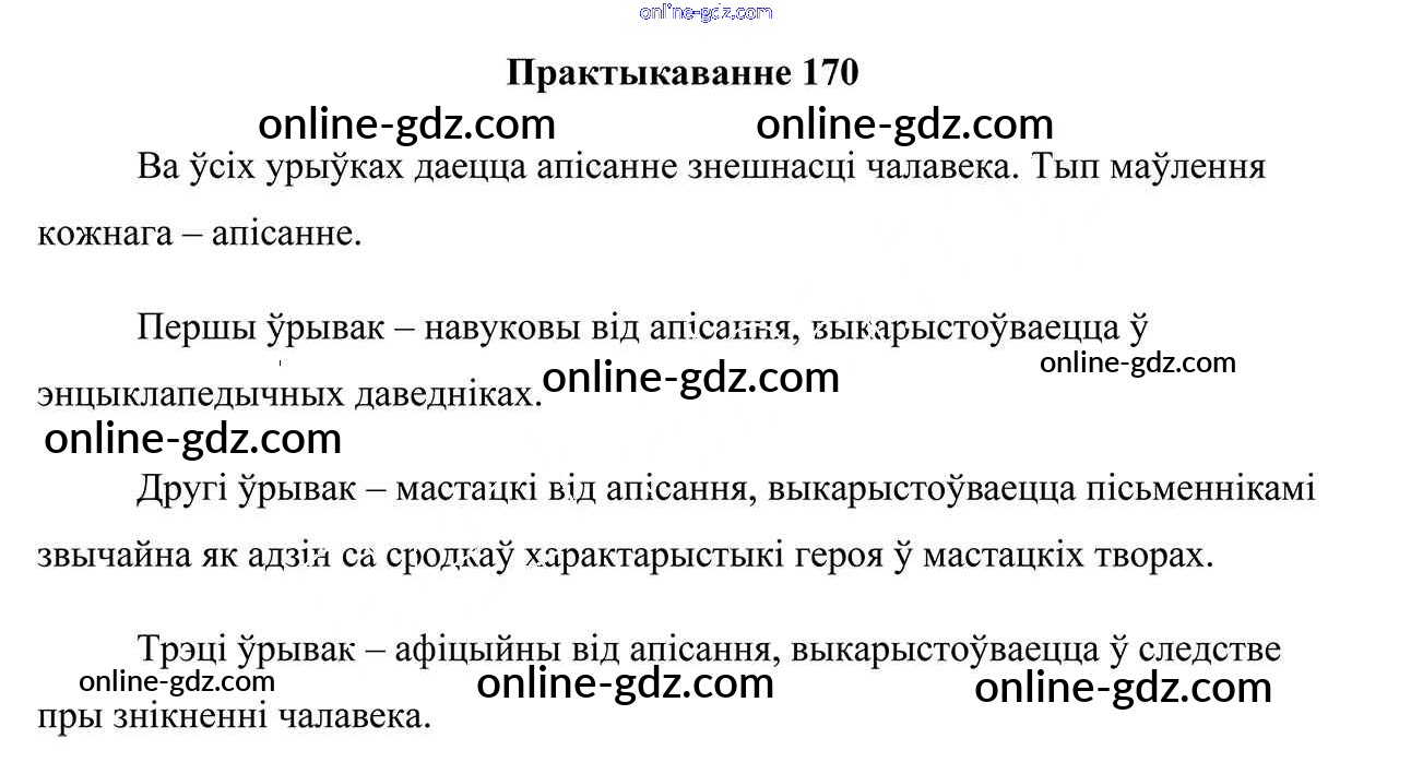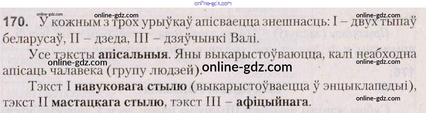 Готовые домашние задания по Белорусскому языку за 7 класс Учебник Валочка, Язерская 2020 - Практыкаванні 170