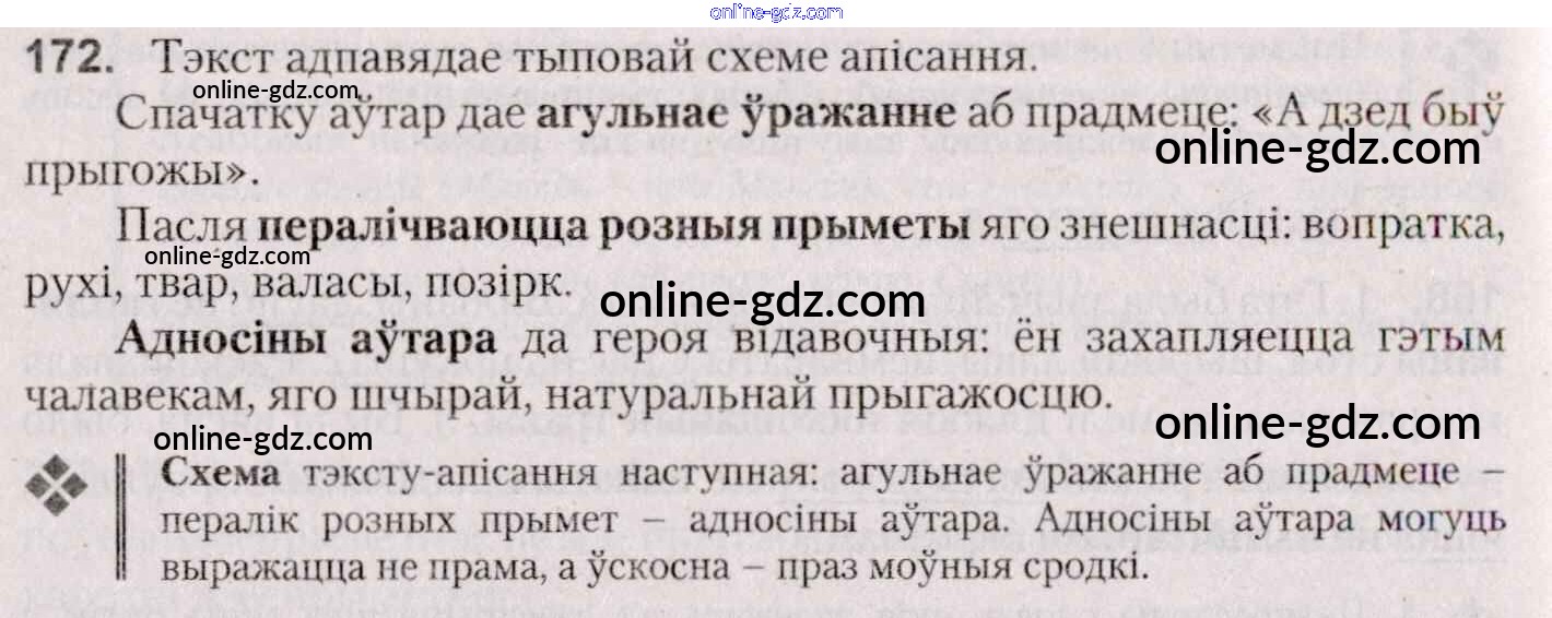 Готовые домашние задания по Белорусскому языку за 7 класс Учебник Валочка, Язерская 2020 - Практыкаванні 172