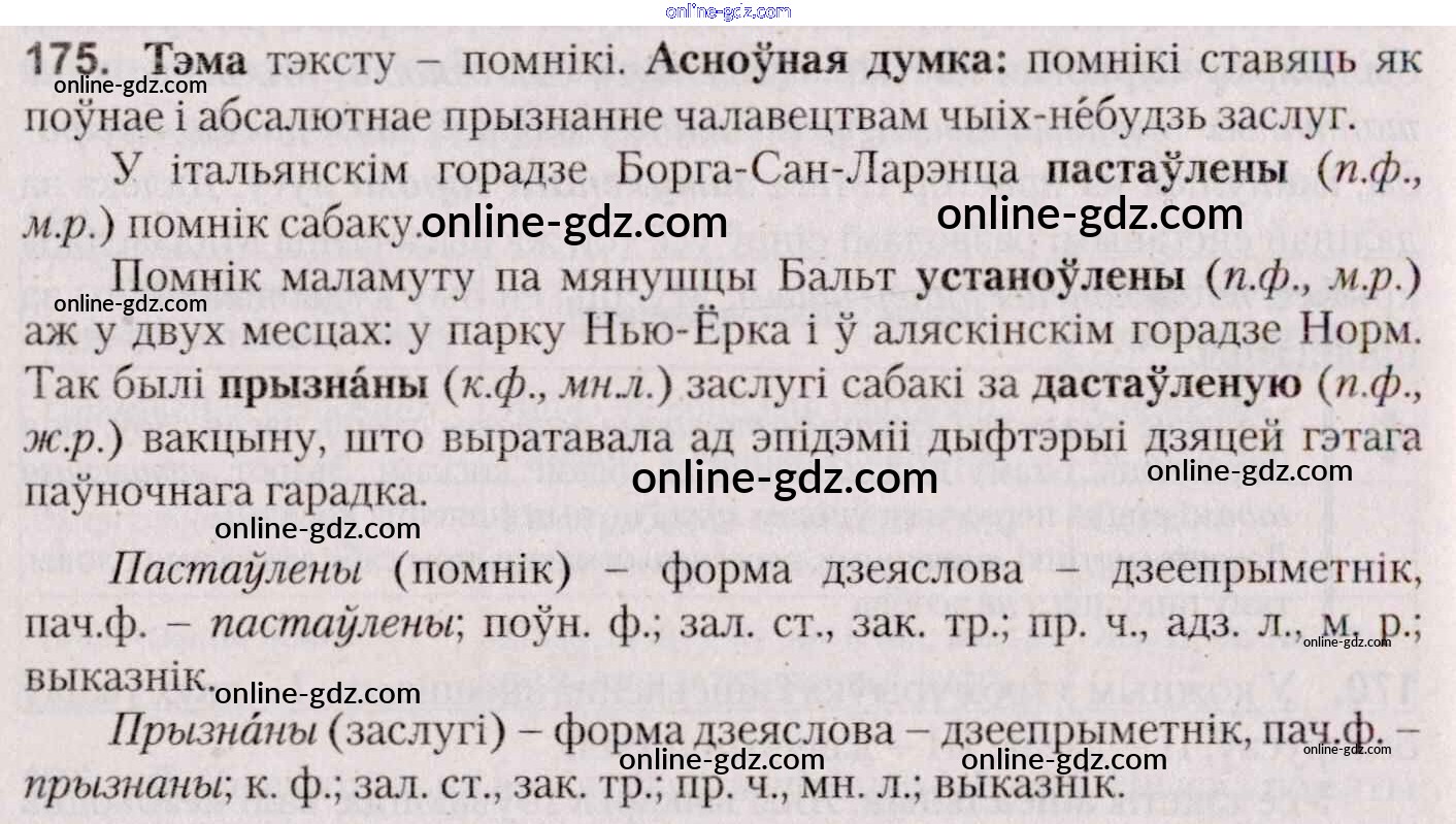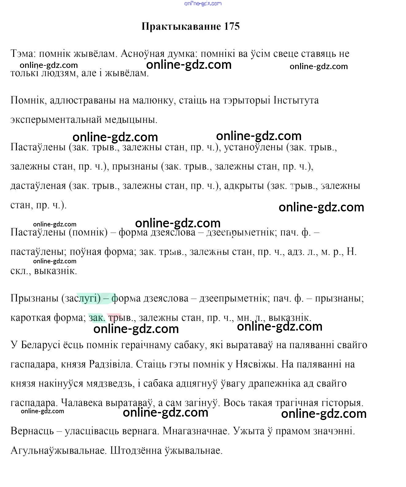 Готовые домашние задания по Белорусскому языку за 7 класс Учебник Валочка, Язерская 2020 - Практыкаванні 175