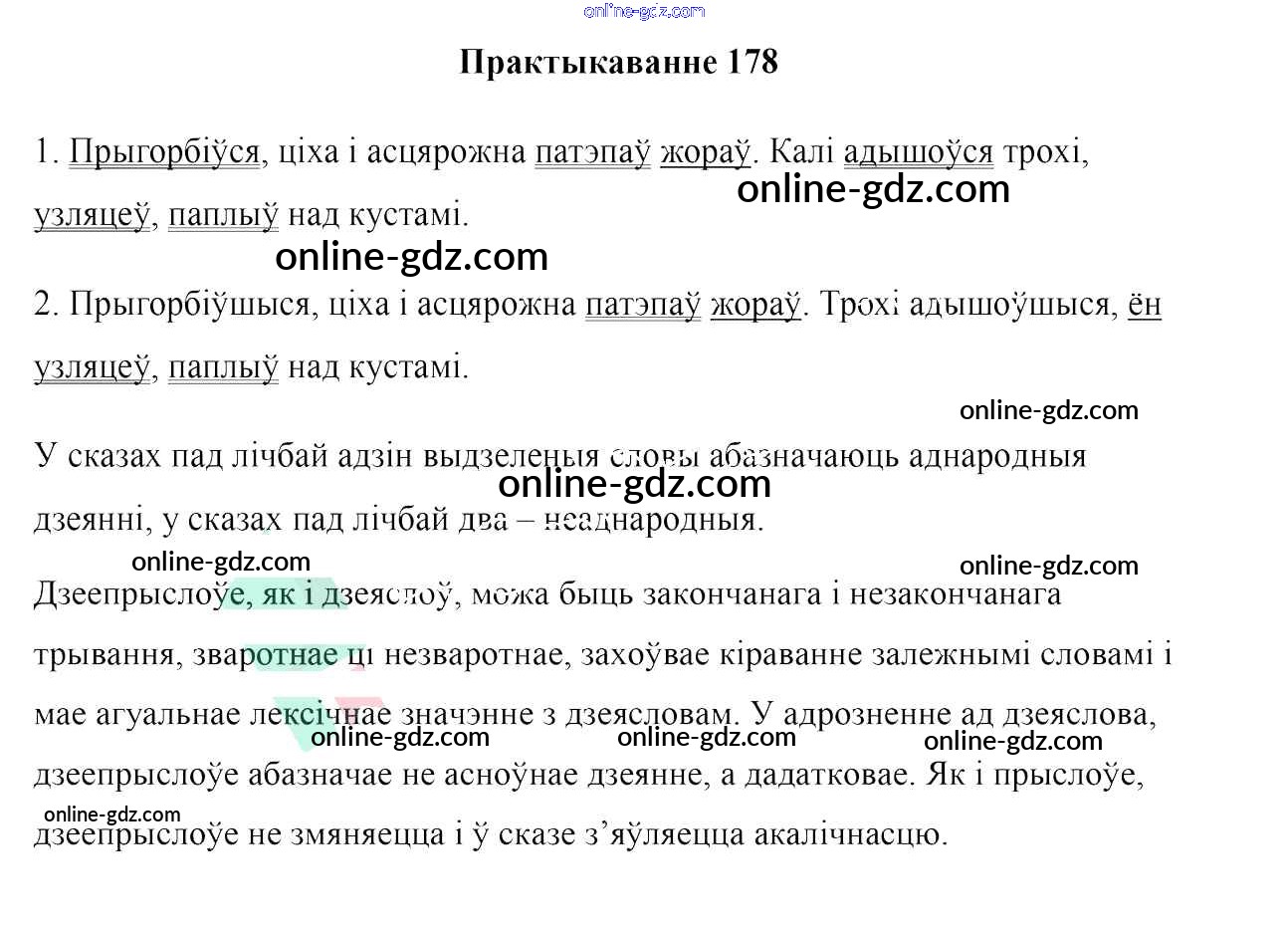 Готовые домашние задания по Белорусскому языку за 7 класс Учебник Валочка, Язерская 2020 - Практыкаванні 178
