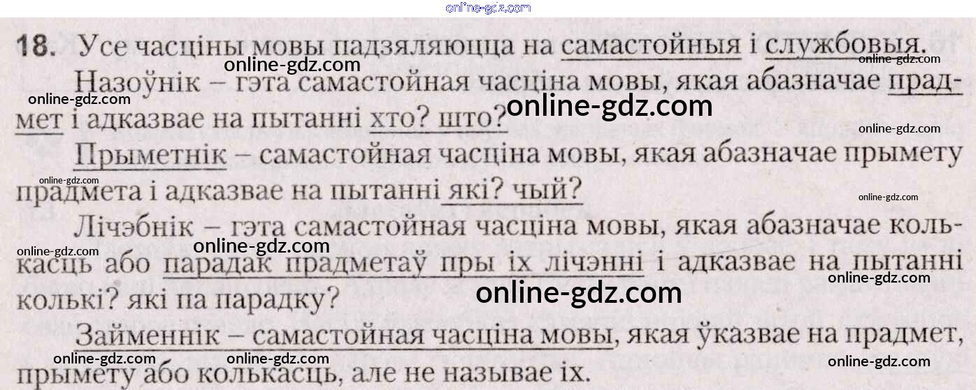 Готовые домашние задания по Белорусскому языку за 7 класс Учебник Валочка, Язерская 2020 - Практыкаванні 18