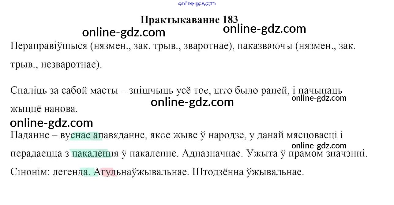 Готовые домашние задания по Белорусскому языку за 7 класс Учебник Валочка, Язерская 2020 - Практыкаванні 183