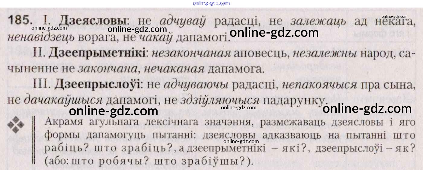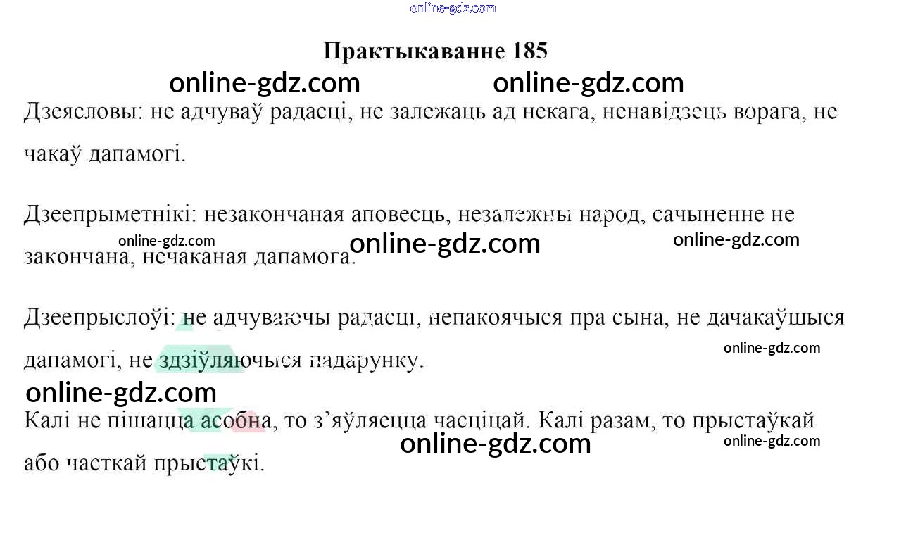 Готовые домашние задания по Белорусскому языку за 7 класс Учебник Валочка, Язерская 2020 - Практыкаванні 185