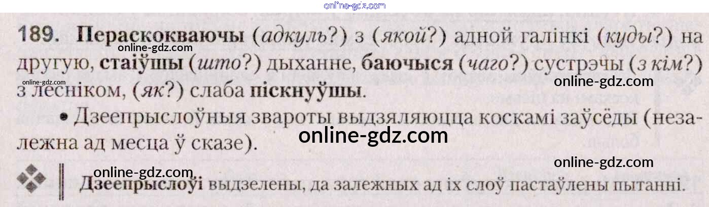 Готовые домашние задания по Белорусскому языку за 7 класс Учебник Валочка, Язерская 2020 - Практыкаванні 189