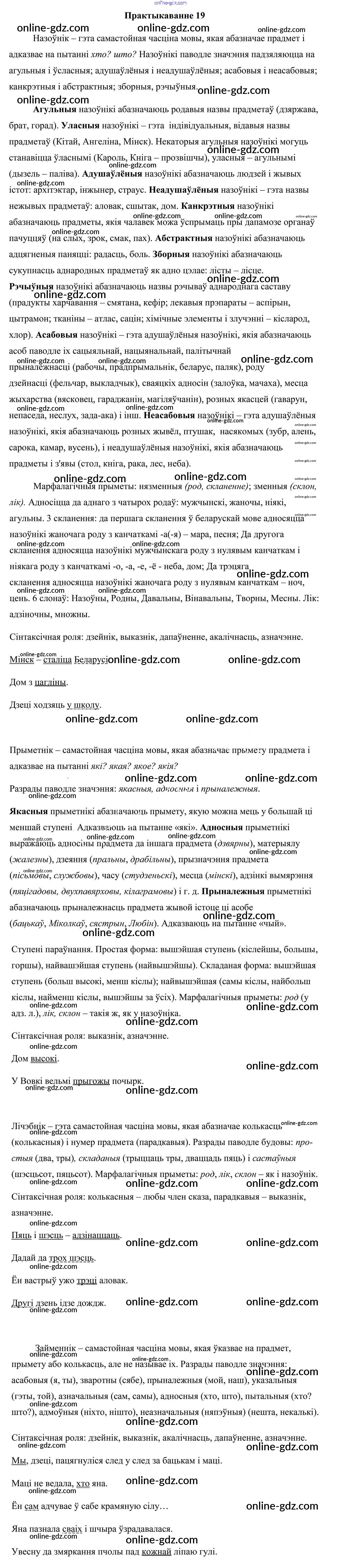 Готовые домашние задания по Белорусскому языку за 7 класс Учебник Валочка, Язерская 2020 - Практыкаванні 19