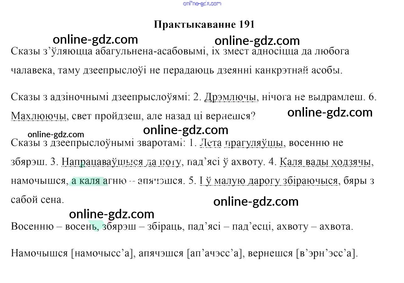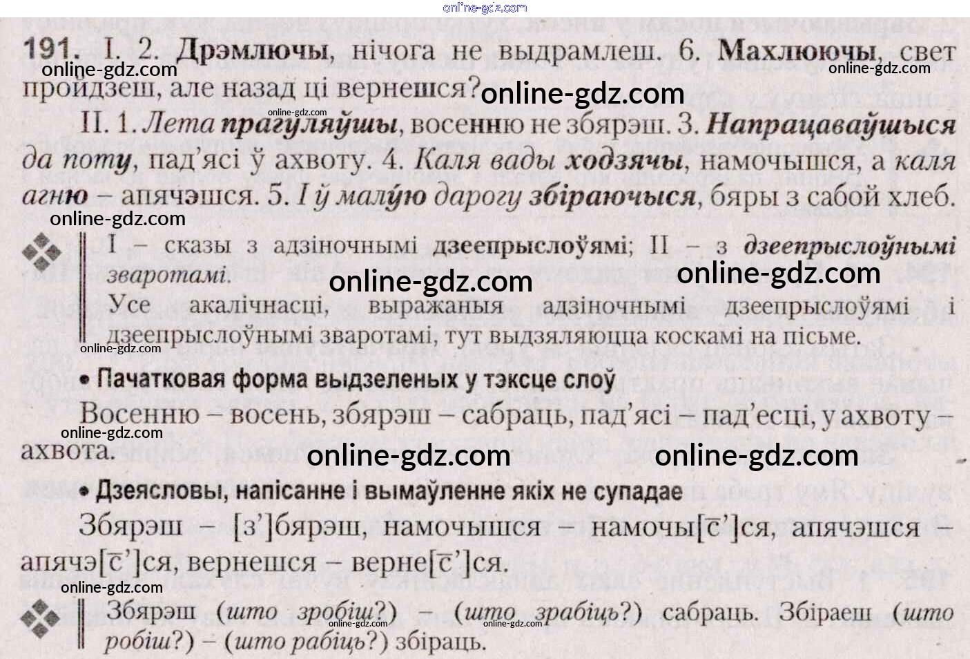 Готовые домашние задания по Белорусскому языку за 7 класс Учебник Валочка, Язерская 2020 - Практыкаванні 191