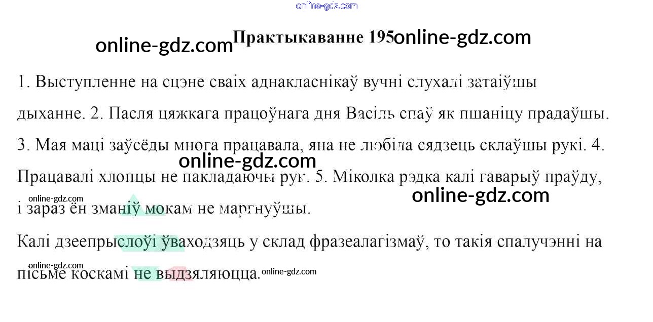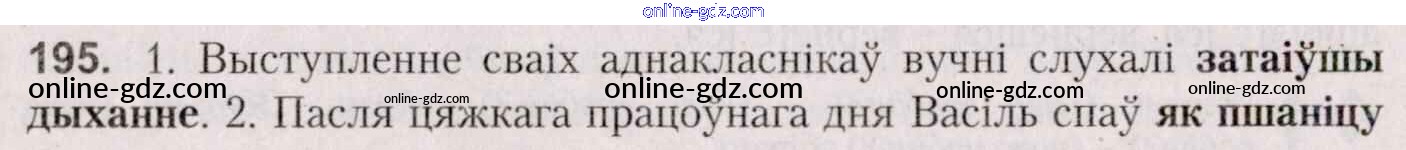 Готовые домашние задания по Белорусскому языку за 7 класс Учебник Валочка, Язерская 2020 - Практыкаванні 195
