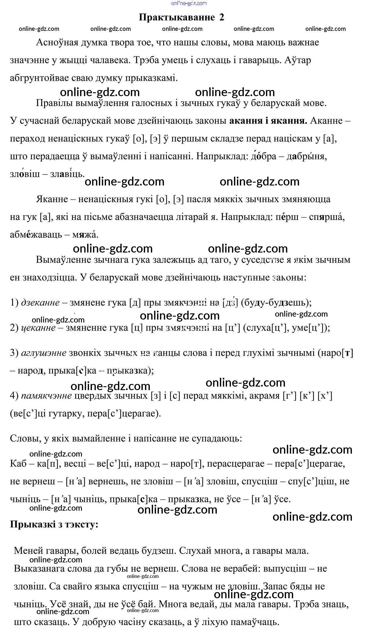 Готовые домашние задания по Белорусскому языку за 7 класс Учебник Валочка, Язерская 2020 - Практыкаванні 2