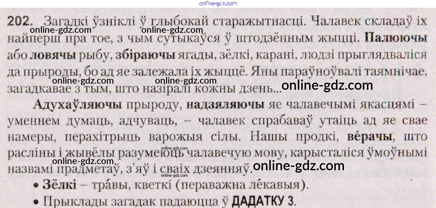 Готовые домашние задания по Белорусскому языку за 7 класс Учебник Валочка, Язерская 2020 - Практыкаванні 202