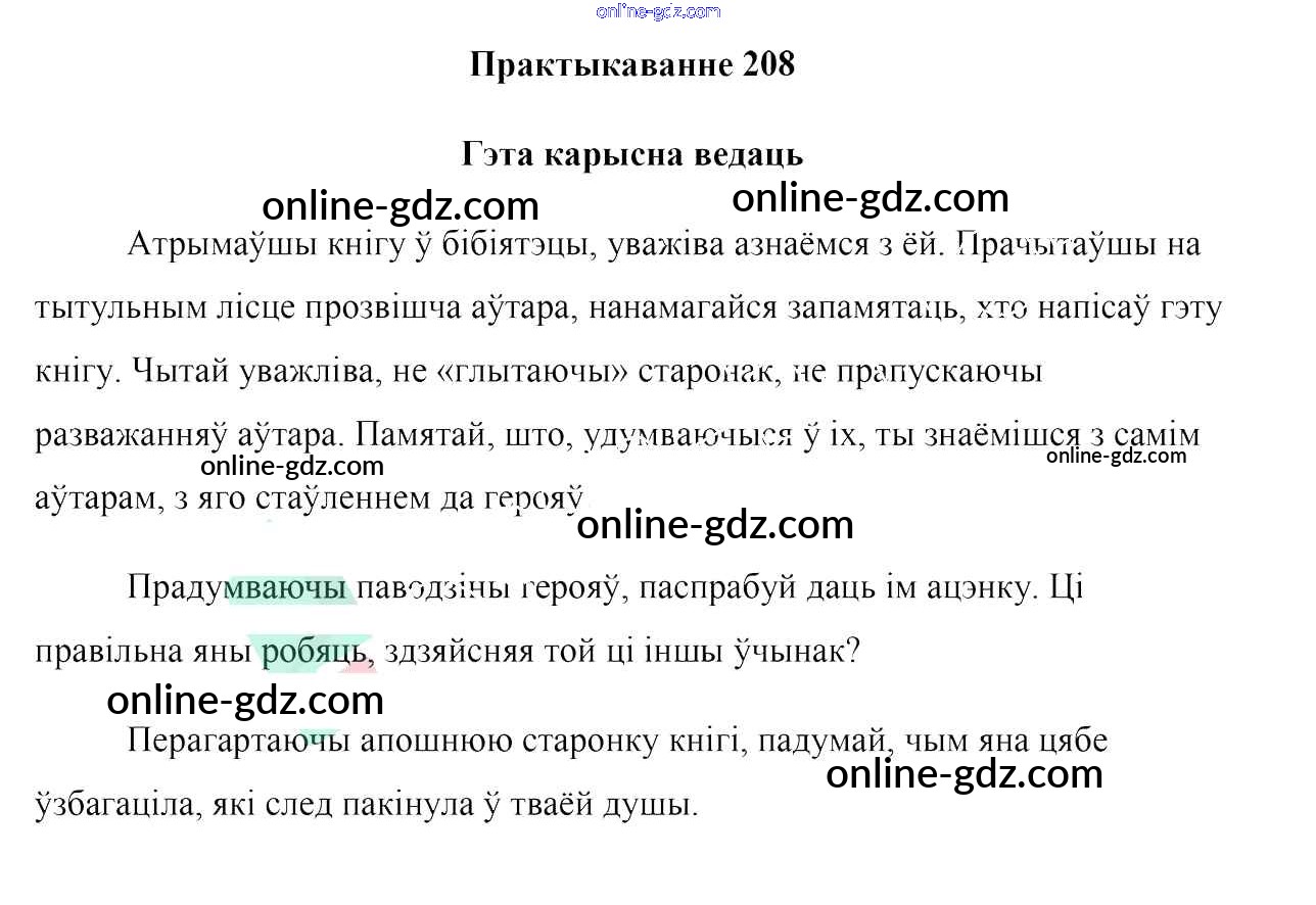 Готовые домашние задания по Белорусскому языку за 7 класс Учебник Валочка, Язерская 2020 - Практыкаванні 208