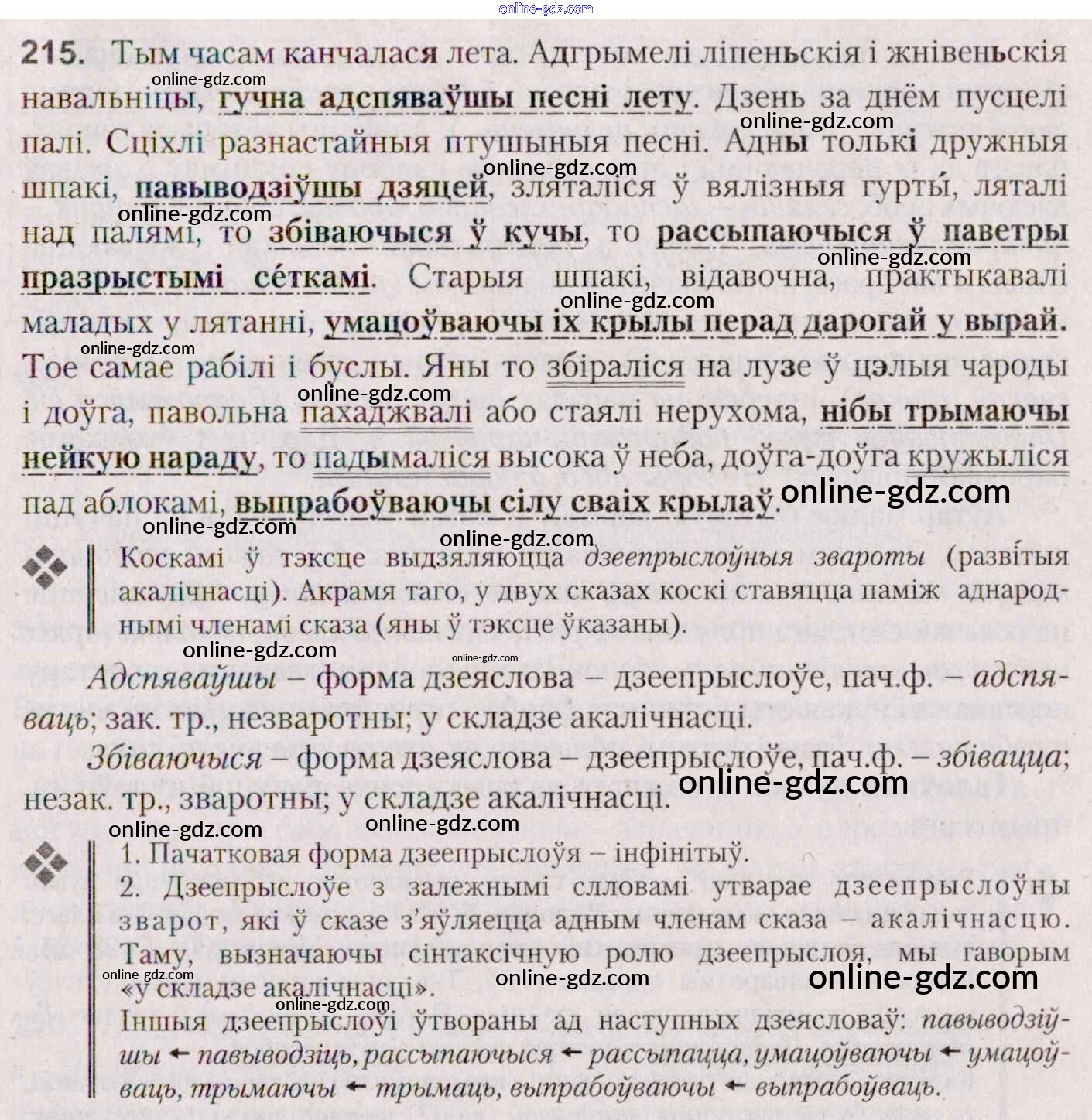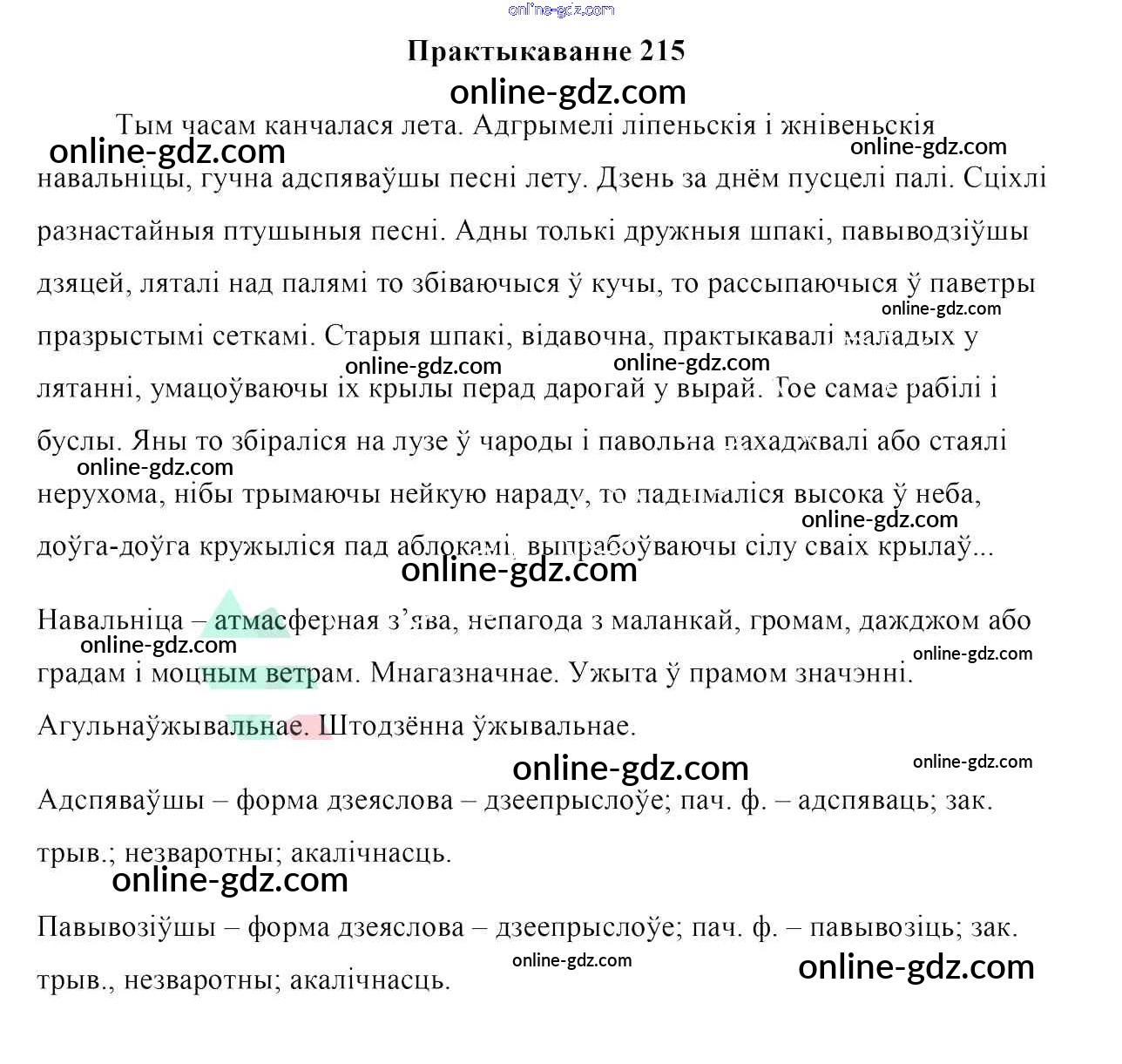 Готовые домашние задания по Белорусскому языку за 7 класс Учебник Валочка, Язерская 2020 - Практыкаванні 215
