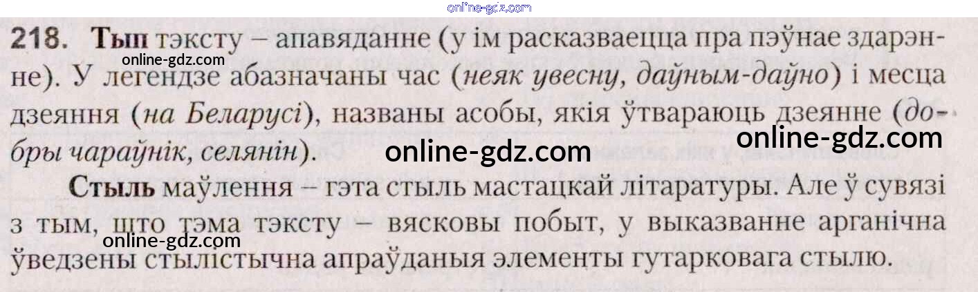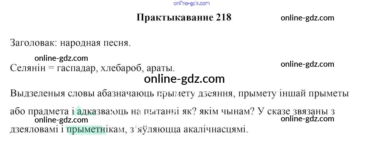 Готовые домашние задания по Белорусскому языку за 7 класс Учебник Валочка, Язерская 2020 - Практыкаванні 218