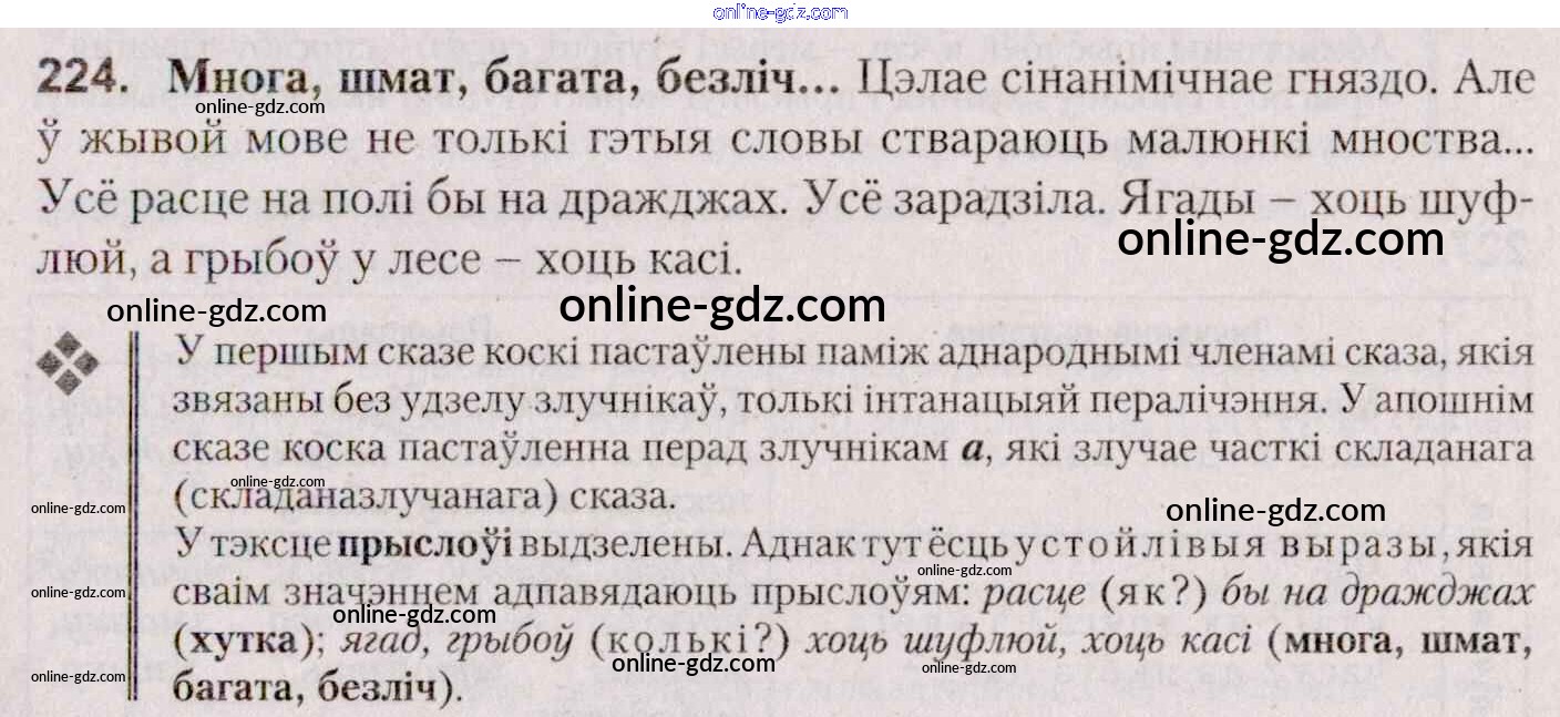 Готовые домашние задания по Белорусскому языку за 7 класс Учебник Валочка, Язерская 2020 - Практыкаванні 224