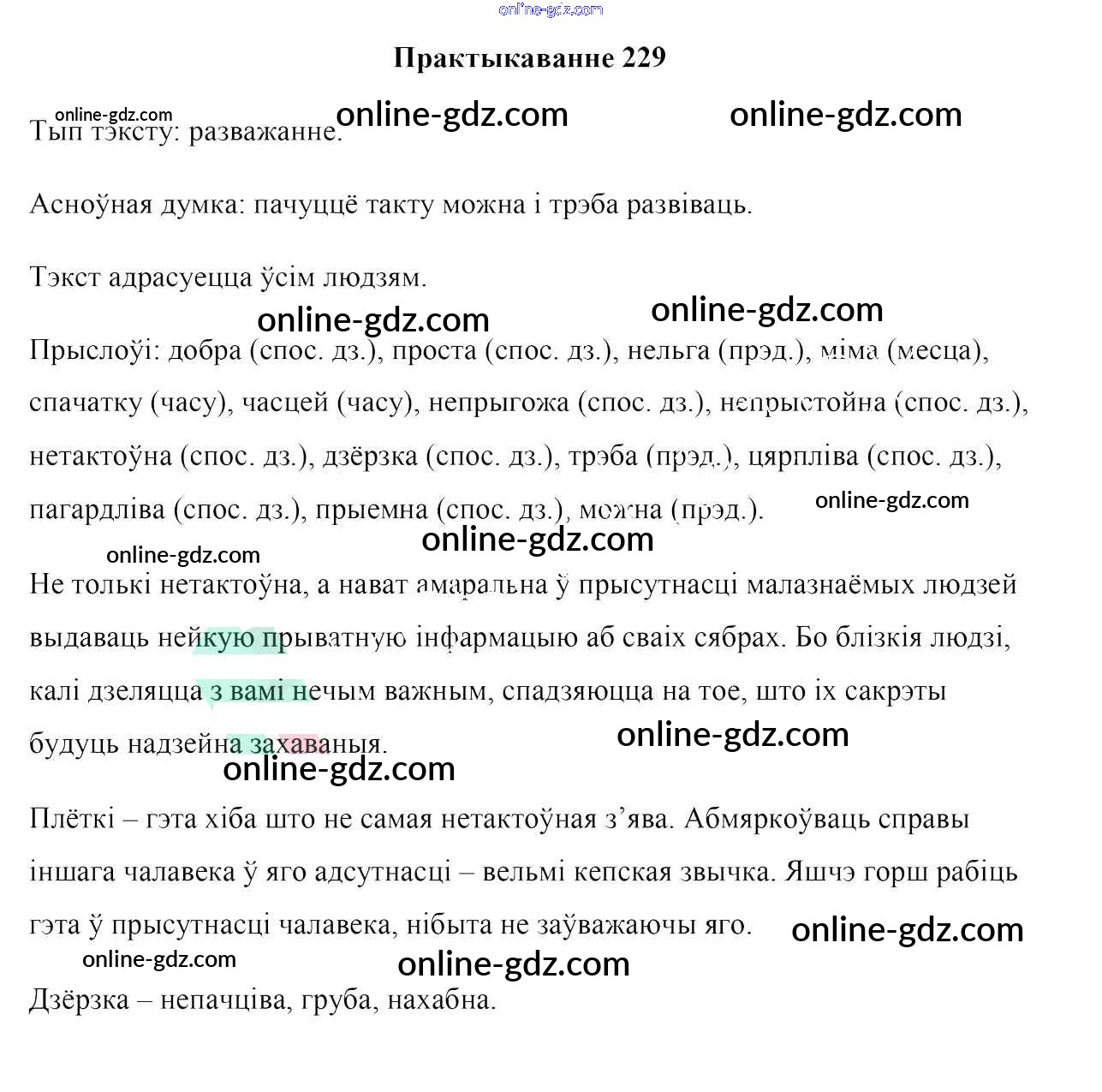 Готовые домашние задания по Белорусскому языку за 7 класс Учебник Валочка, Язерская 2020 - Практыкаванні 229