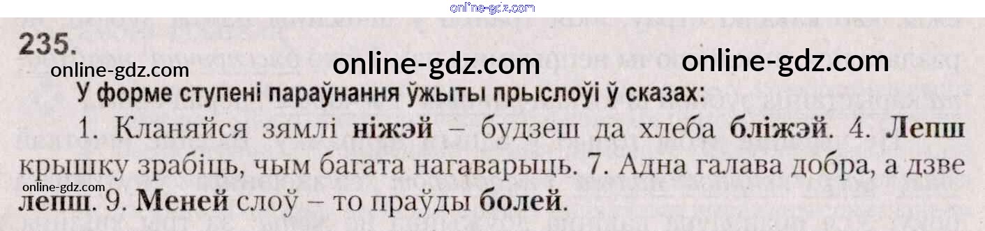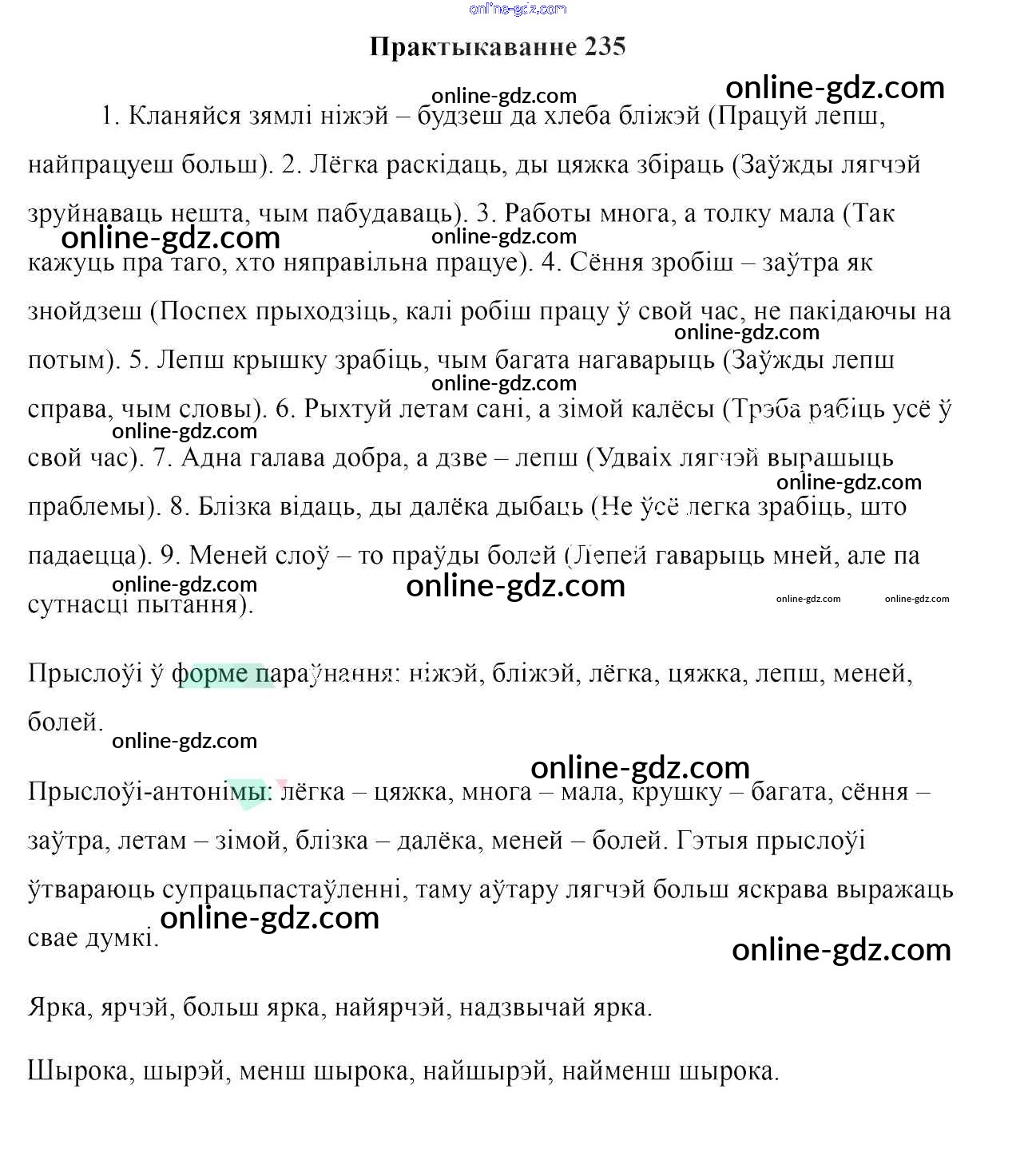 Готовые домашние задания по Белорусскому языку за 7 класс Учебник Валочка, Язерская 2020 - Практыкаванні 235