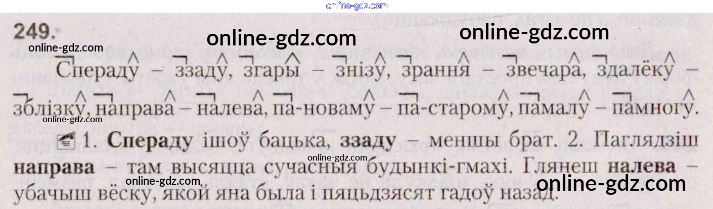 Готовые домашние задания по Белорусскому языку за 7 класс Учебник Валочка, Язерская 2020 - Практыкаванні 249