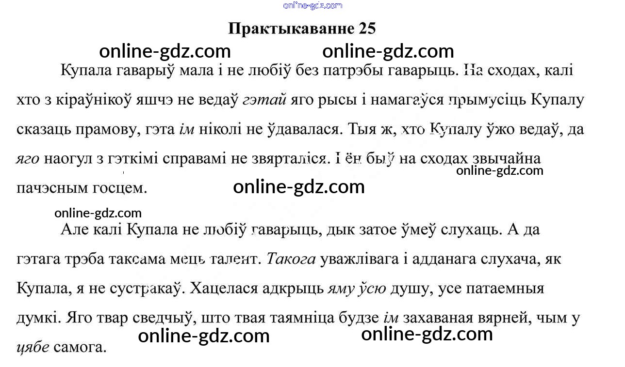 Готовые домашние задания по Белорусскому языку за 7 класс Учебник Валочка, Язерская 2020 - Практыкаванні 25
