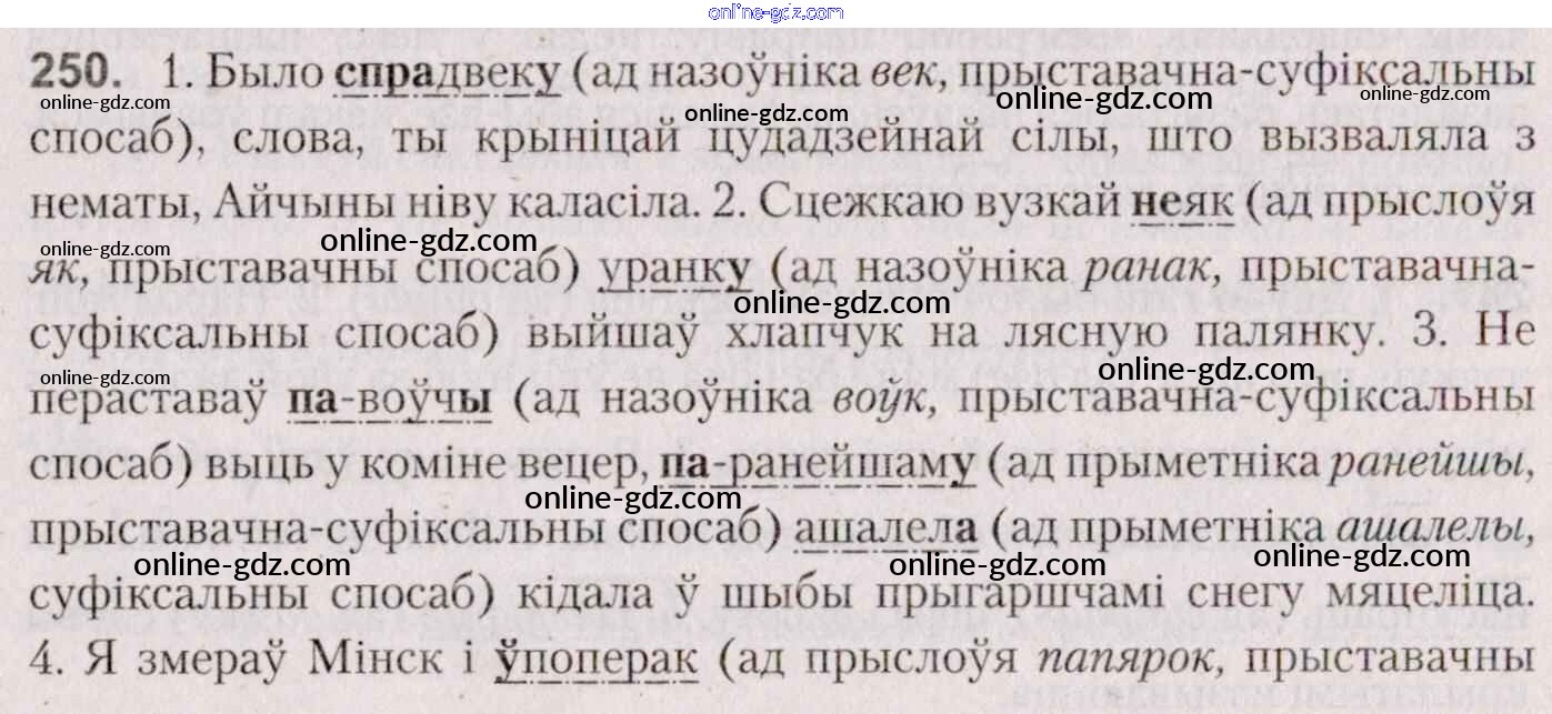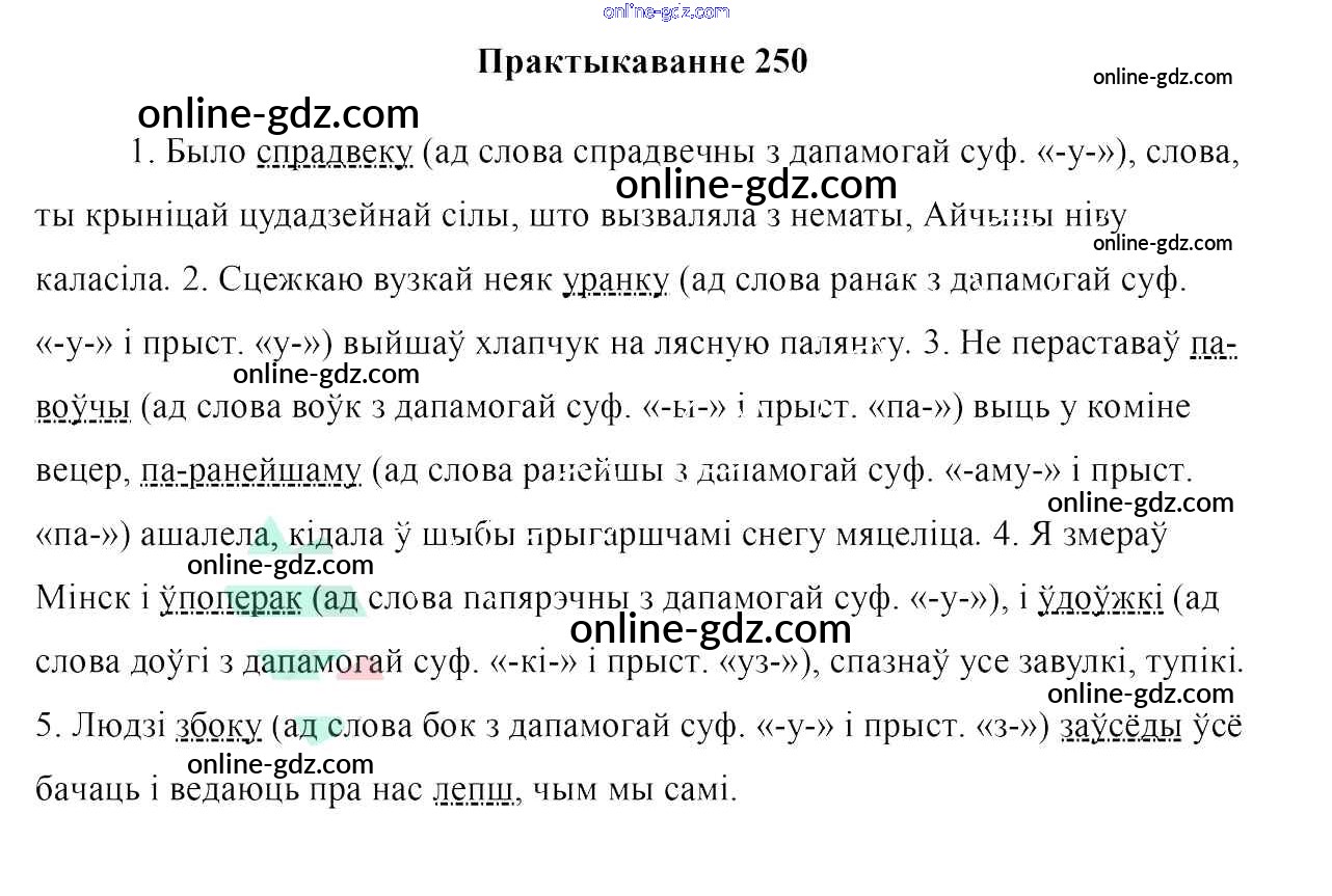 Готовые домашние задания по Белорусскому языку за 7 класс Учебник Валочка, Язерская 2020 - Практыкаванні 250