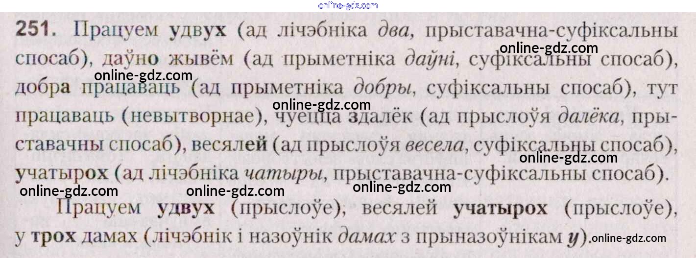 Готовые домашние задания по Белорусскому языку за 7 класс Учебник Валочка, Язерская 2020 - Практыкаванні 251