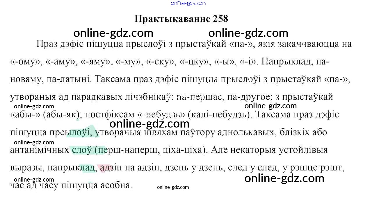 Готовые домашние задания по Белорусскому языку за 7 класс Учебник Валочка, Язерская 2020 - Практыкаванні 258