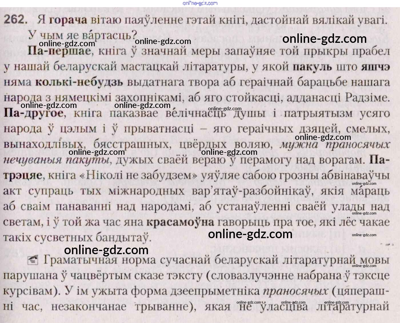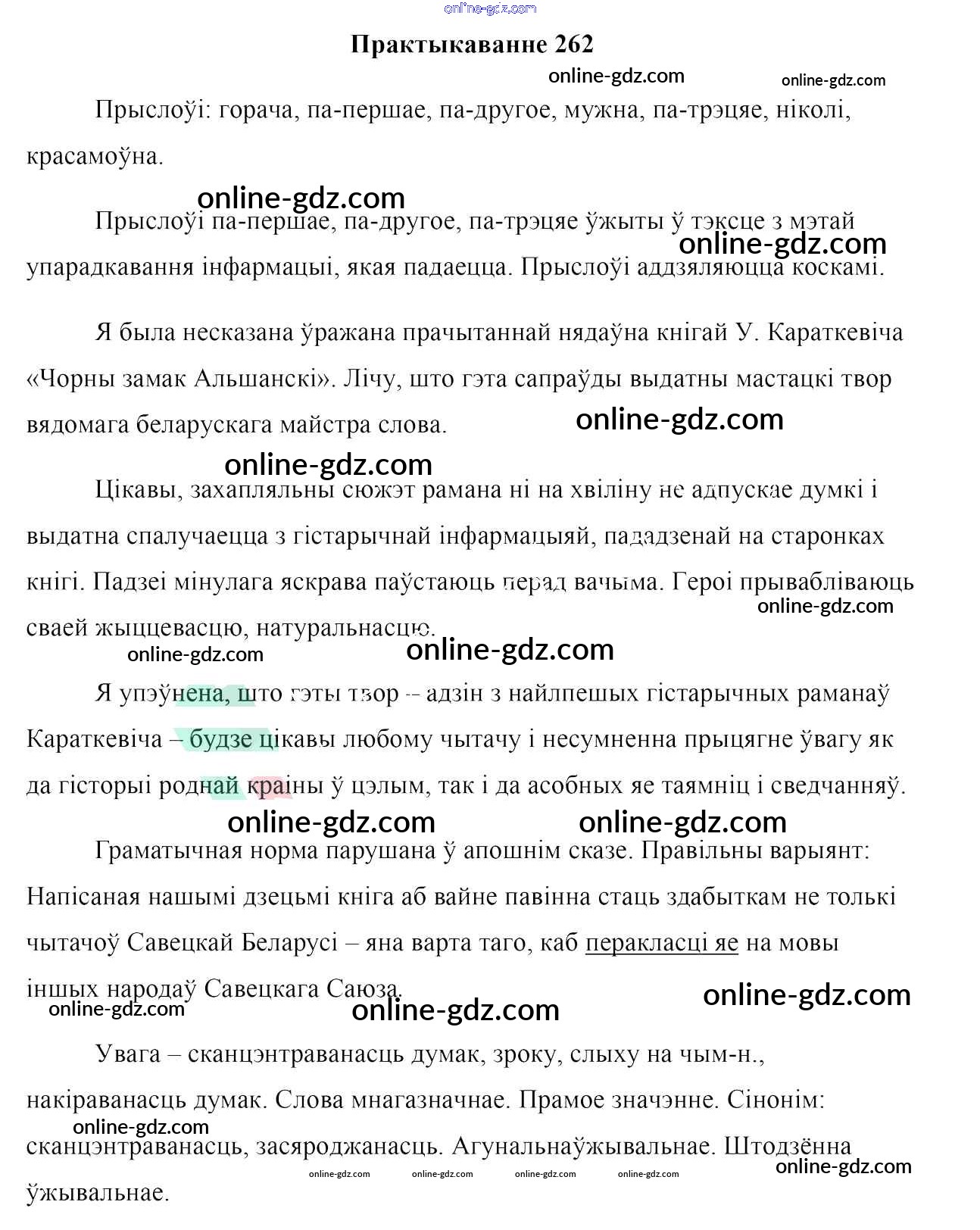 Готовые домашние задания по Белорусскому языку за 7 класс Учебник Валочка, Язерская 2020 - Практыкаванні 262