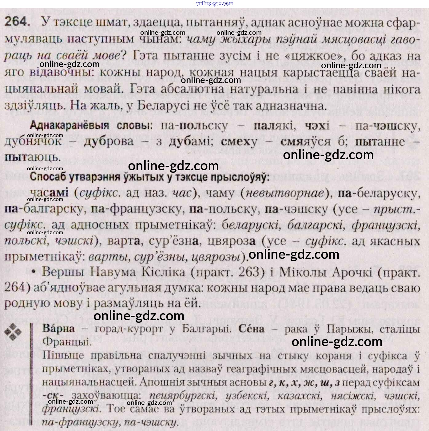 Готовые домашние задания по Белорусскому языку за 7 класс Учебник Валочка, Язерская 2020 - Практыкаванні 264