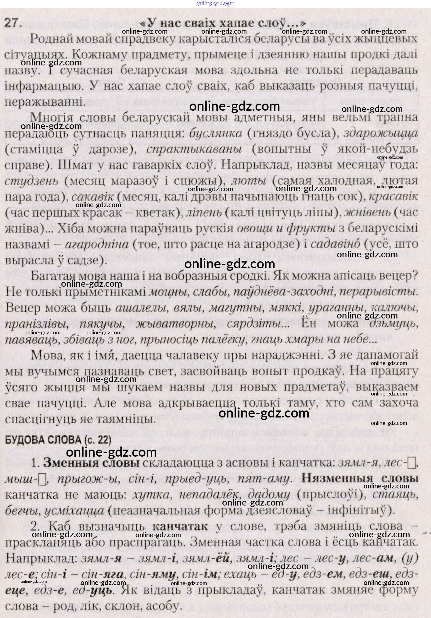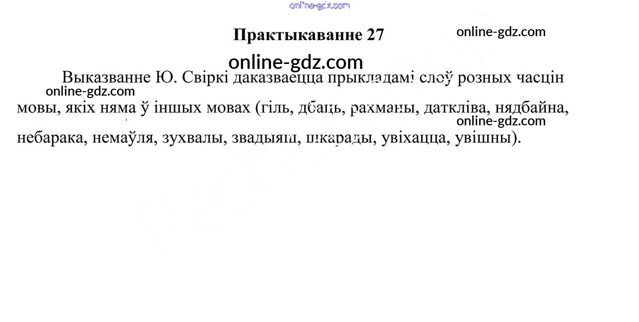 Готовые домашние задания по Белорусскому языку за 7 класс Учебник Валочка, Язерская 2020 - Практыкаванні 27