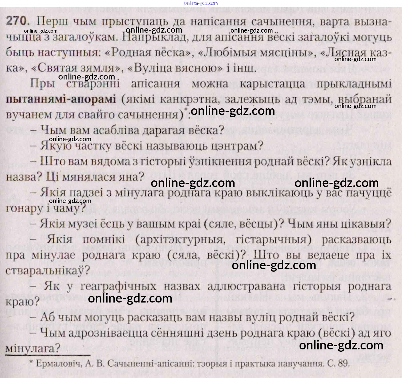 Готовые домашние задания по Белорусскому языку за 7 класс Учебник Валочка, Язерская 2020 - Практыкаванні 270