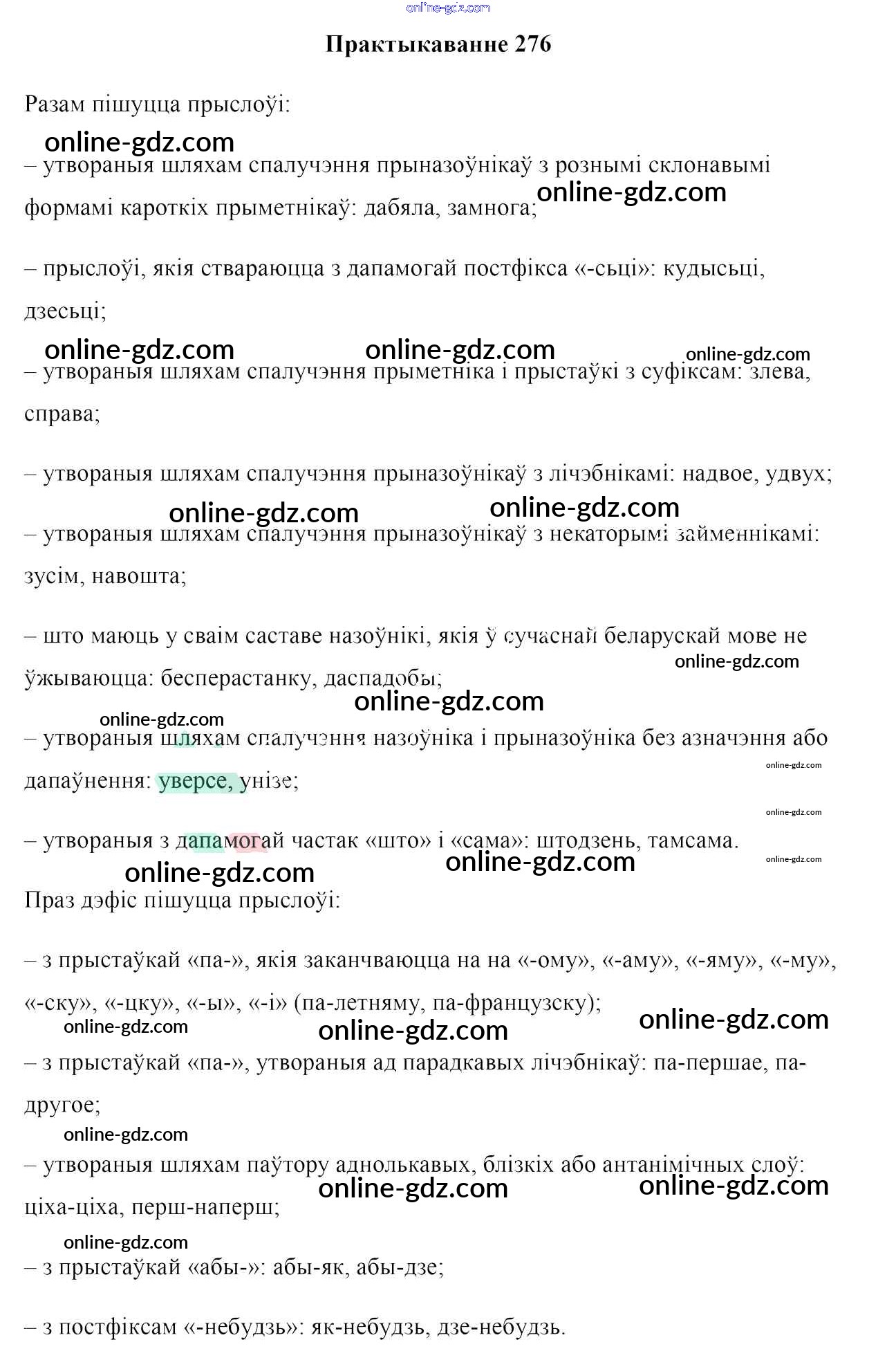 Готовые домашние задания по Белорусскому языку за 7 класс Учебник Валочка, Язерская 2020 - Практыкаванні 276