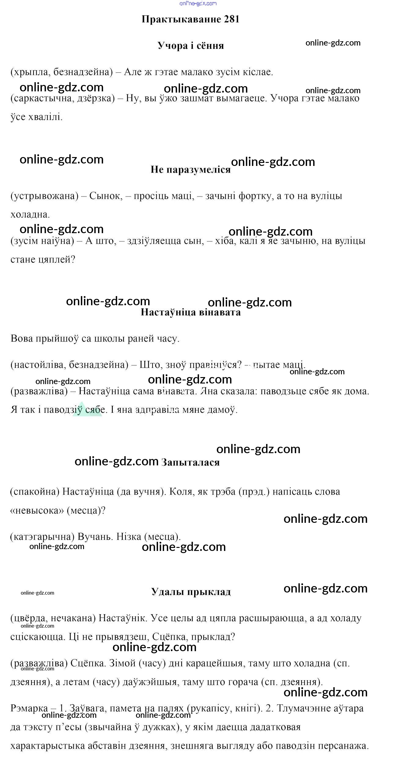 Готовые домашние задания по Белорусскому языку за 7 класс Учебник Валочка, Язерская 2020 - Практыкаванні 281