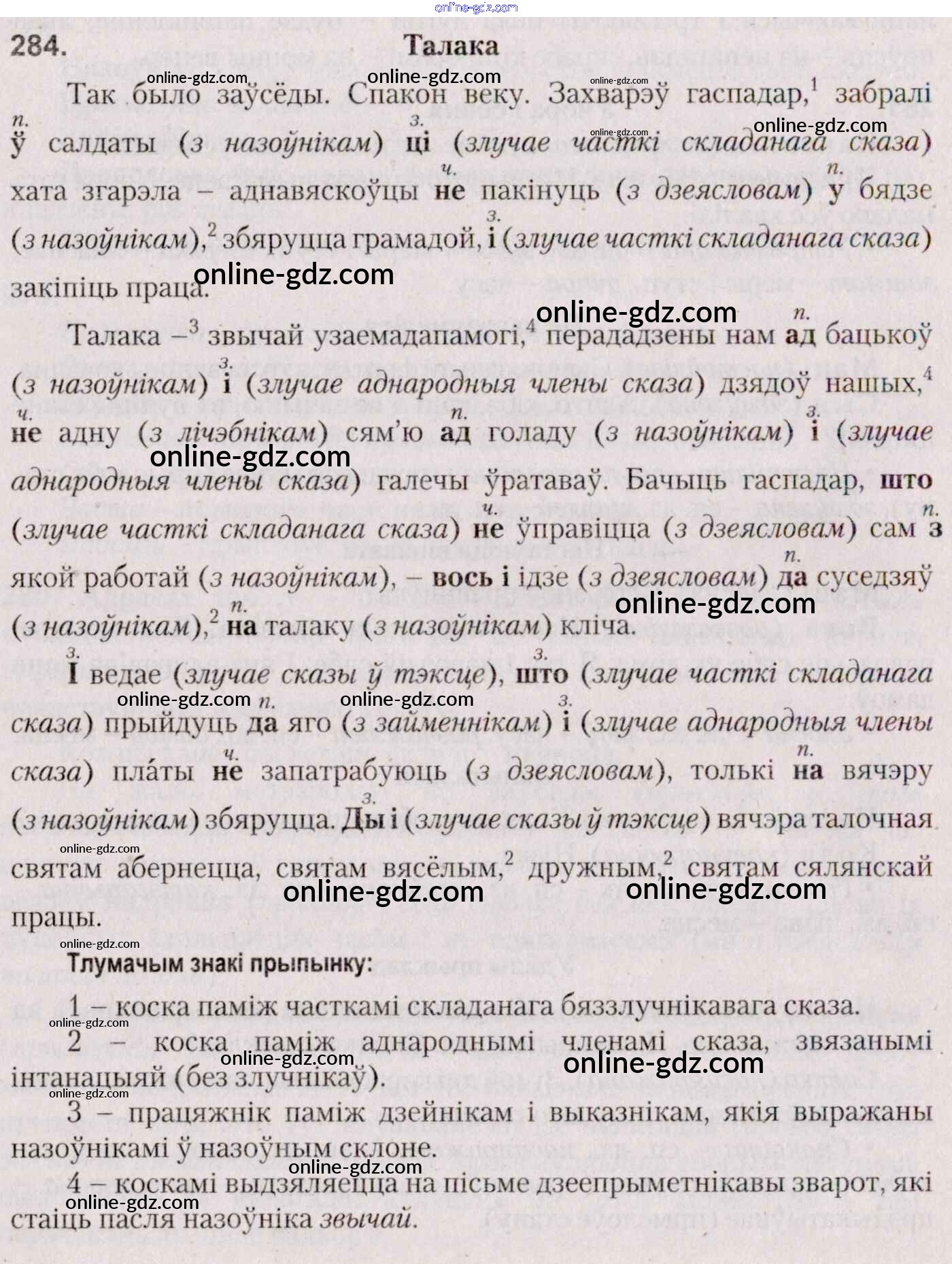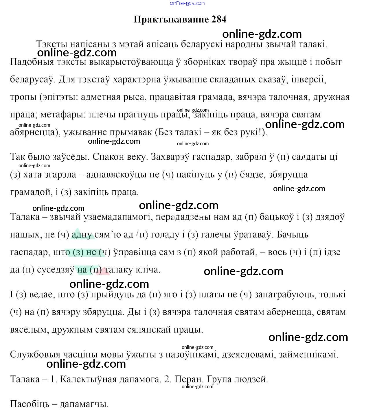 Готовые домашние задания по Белорусскому языку за 7 класс Учебник Валочка, Язерская 2020 - Практыкаванні 284