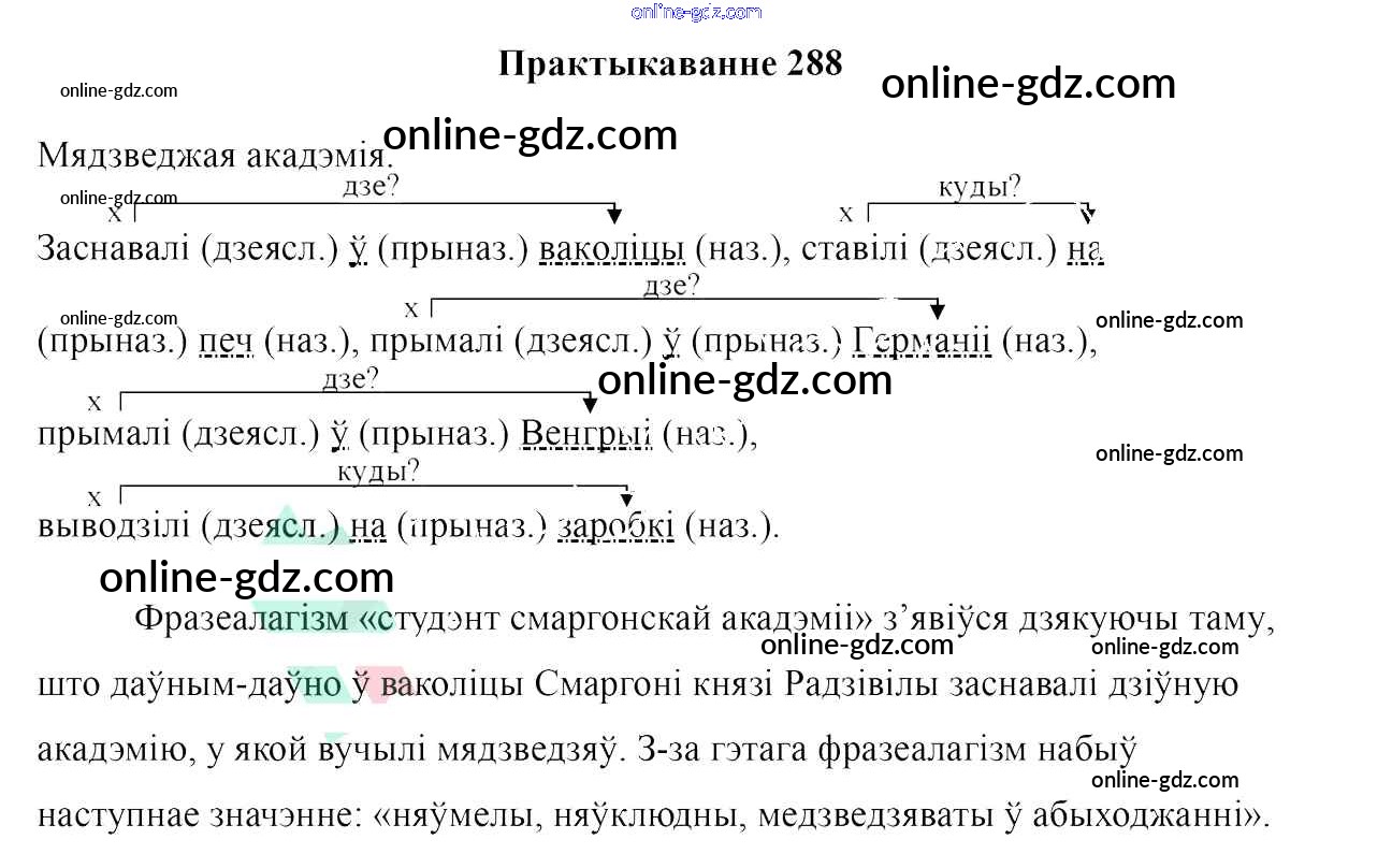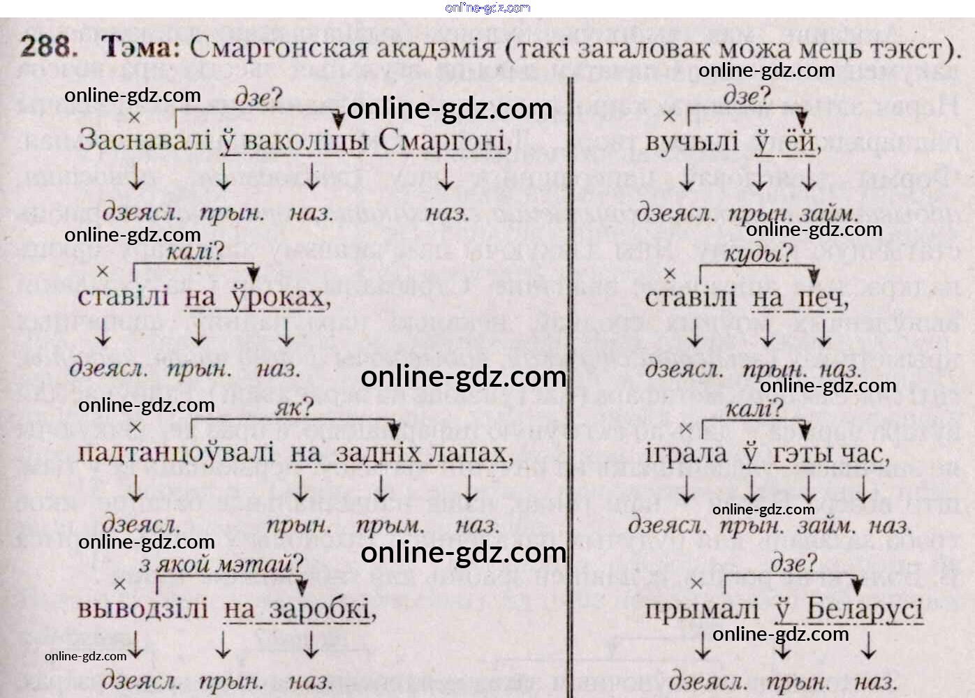 Готовые домашние задания по Белорусскому языку за 7 класс Учебник Валочка, Язерская 2020 - Практыкаванні 288