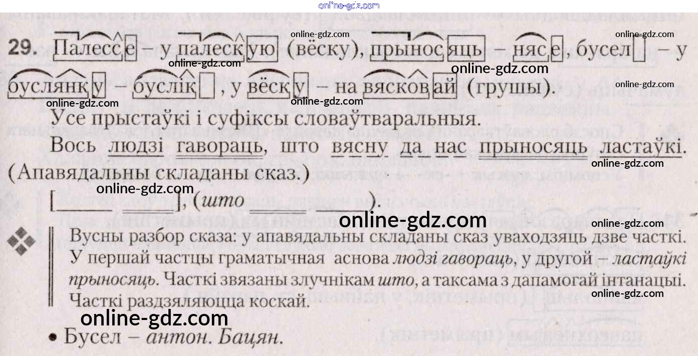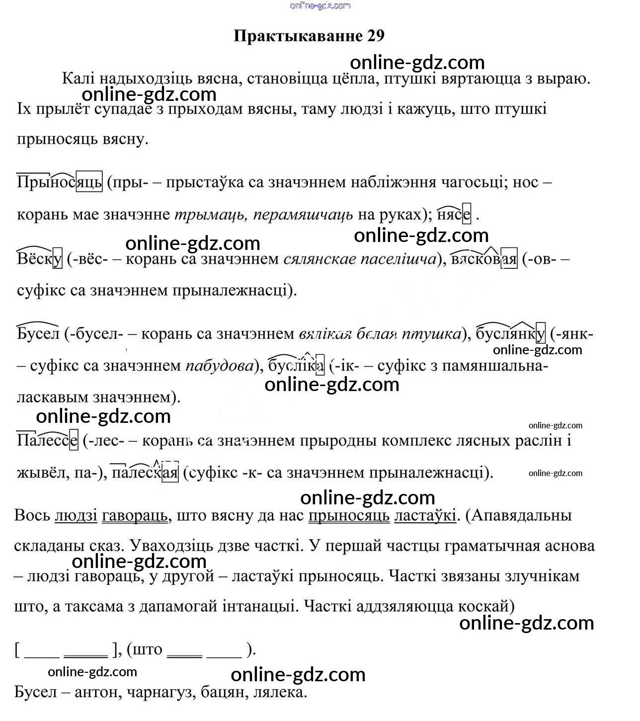Готовые домашние задания по Белорусскому языку за 7 класс Учебник Валочка, Язерская 2020 - Практыкаванні 29