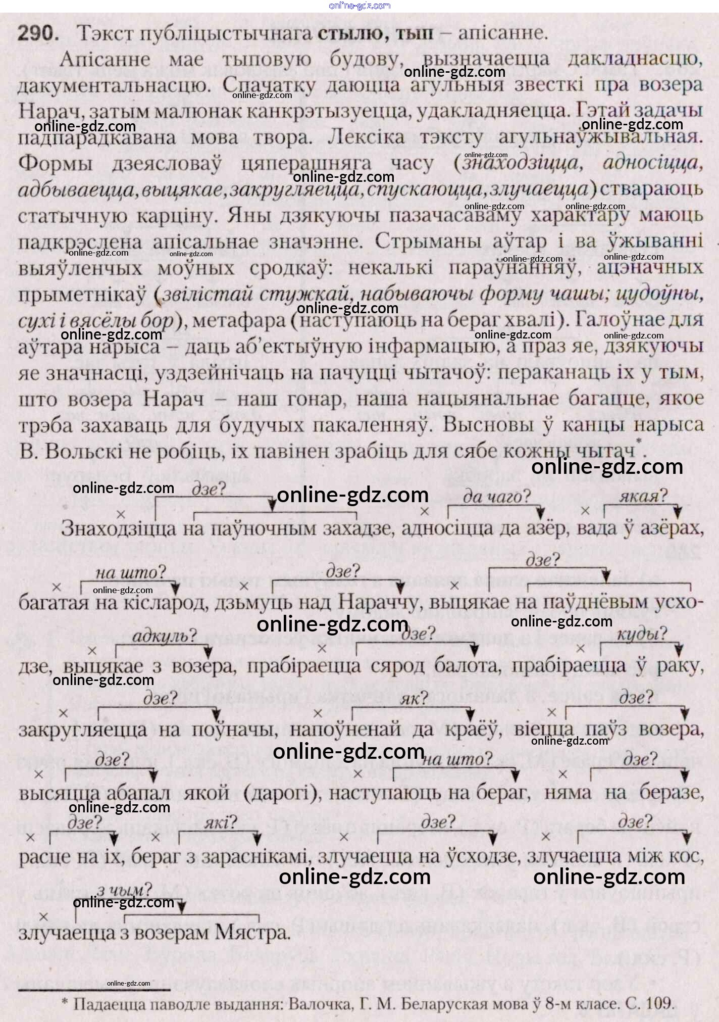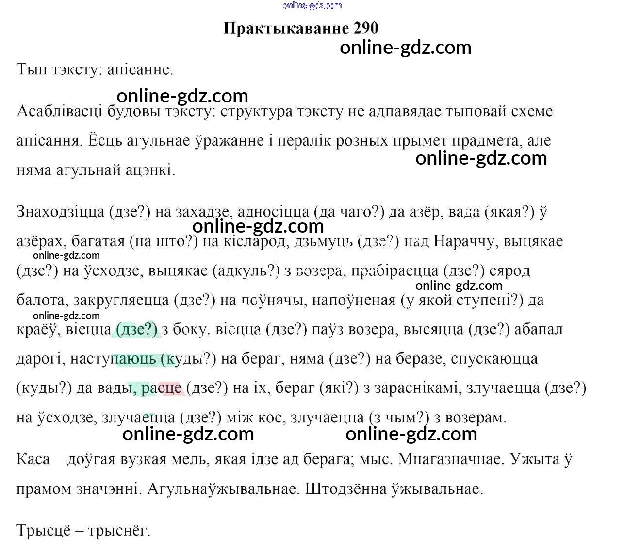 Готовые домашние задания по Белорусскому языку за 7 класс Учебник Валочка, Язерская 2020 - Практыкаванні 290