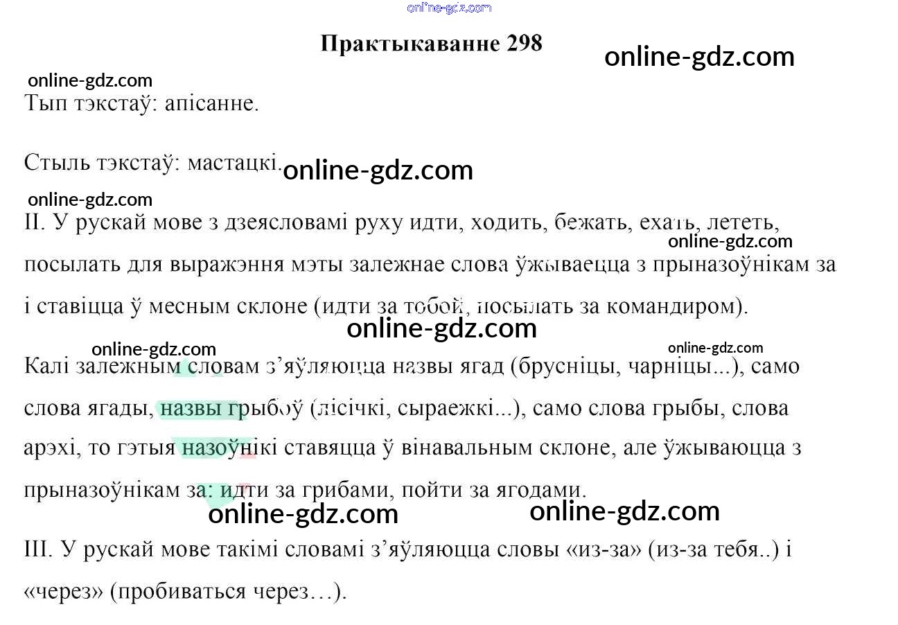 Готовые домашние задания по Белорусскому языку за 7 класс Учебник Валочка, Язерская 2020 - Практыкаванні 298