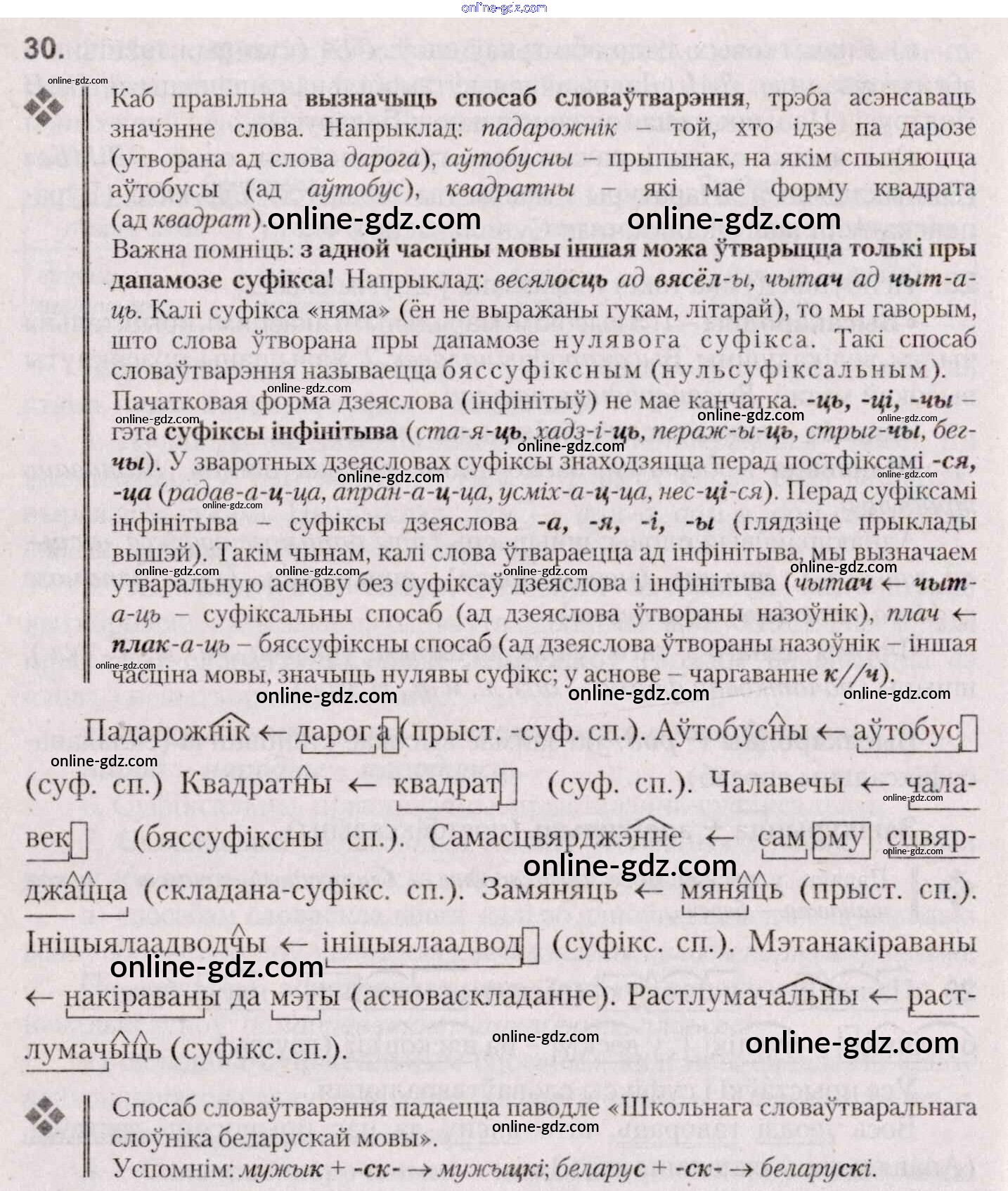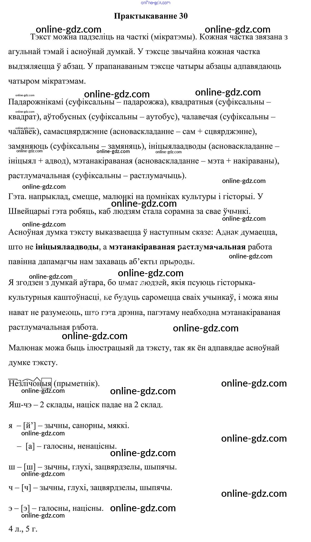Готовые домашние задания по Белорусскому языку за 7 класс Учебник Валочка, Язерская 2020 - Практыкаванні 30