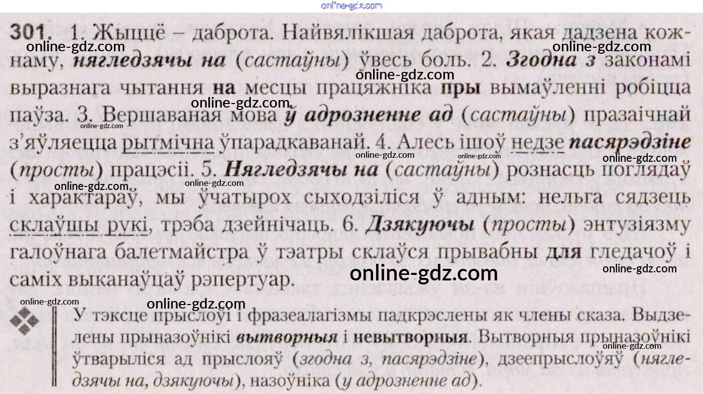 Готовые домашние задания по Белорусскому языку за 7 класс Учебник Валочка, Язерская 2020 - Практыкаванні 301