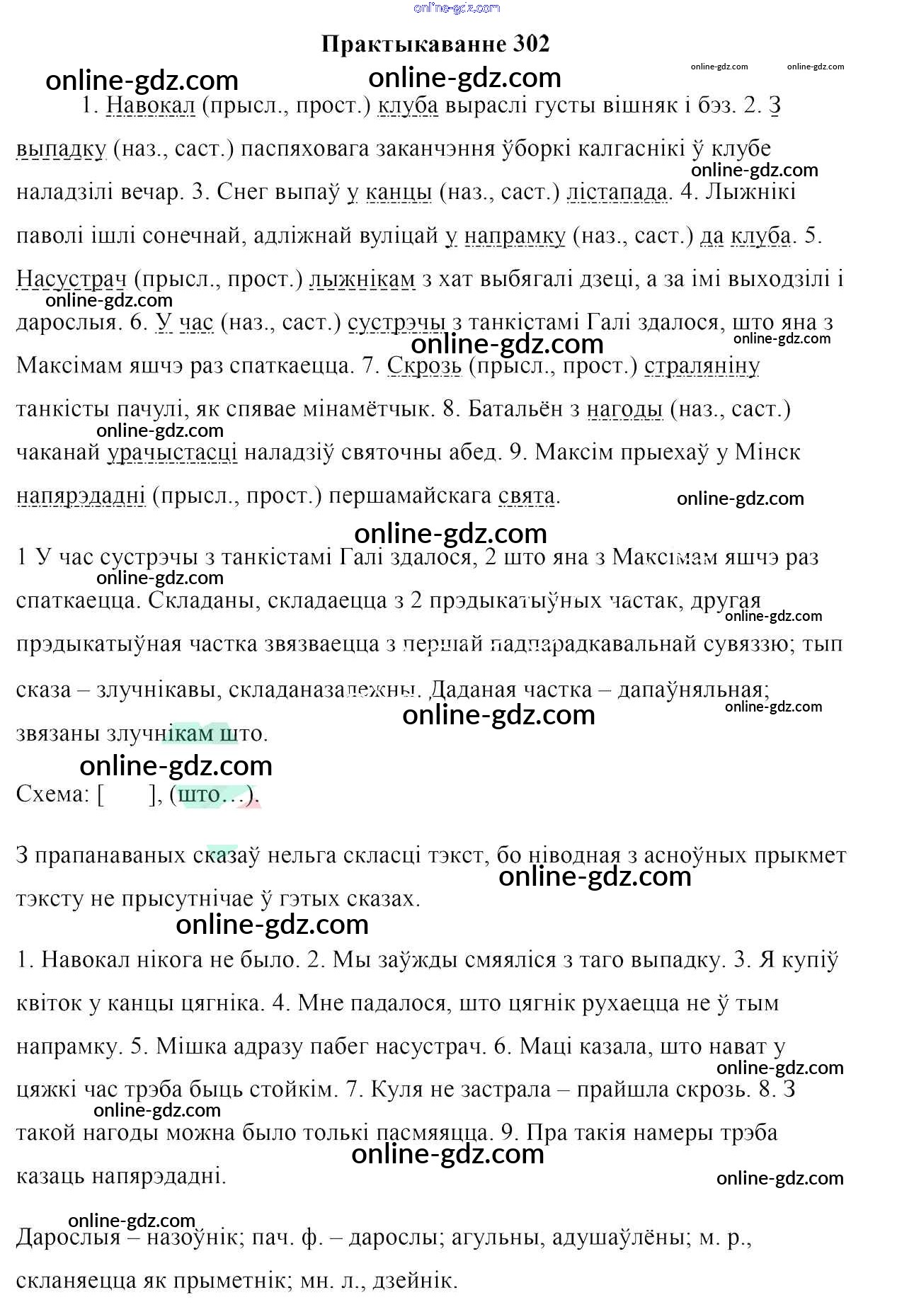 Готовые домашние задания по Белорусскому языку за 7 класс Учебник Валочка, Язерская 2020 - Практыкаванні 302