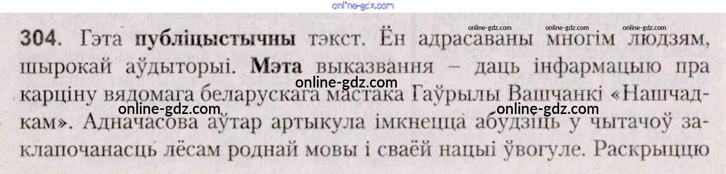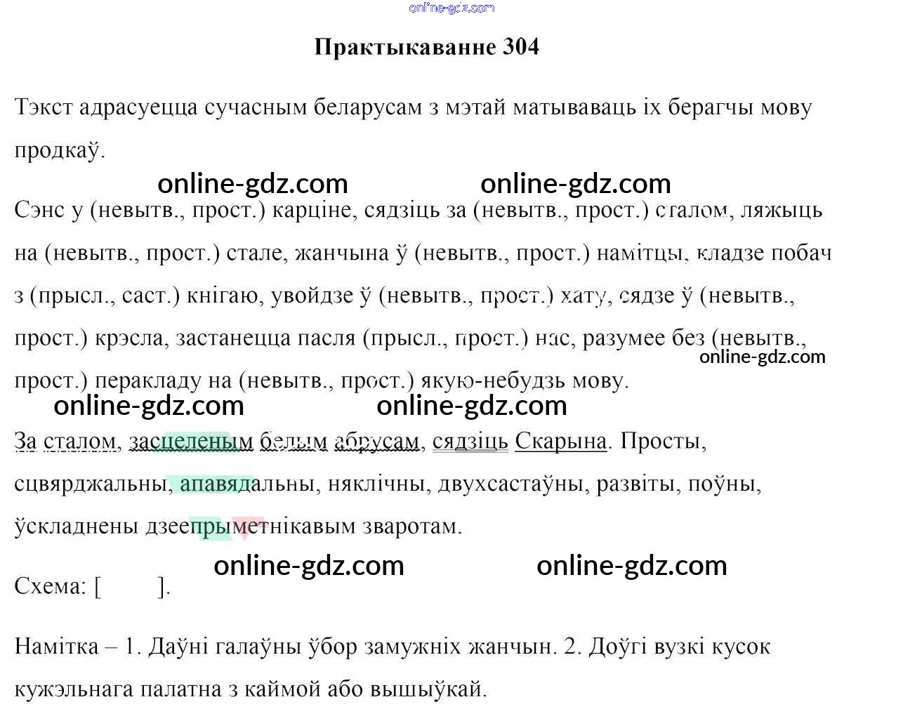 Готовые домашние задания по Белорусскому языку за 7 класс Учебник Валочка, Язерская 2020 - Практыкаванні 304